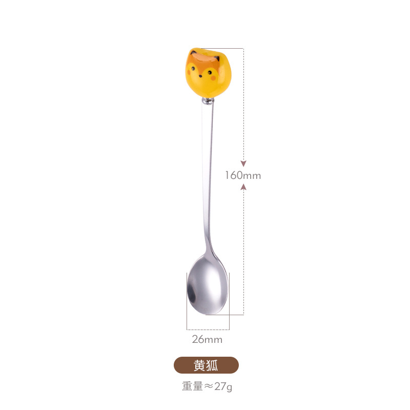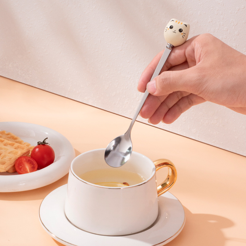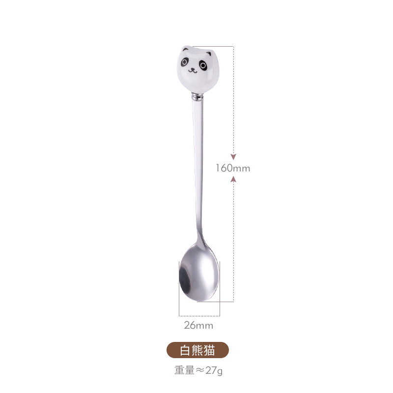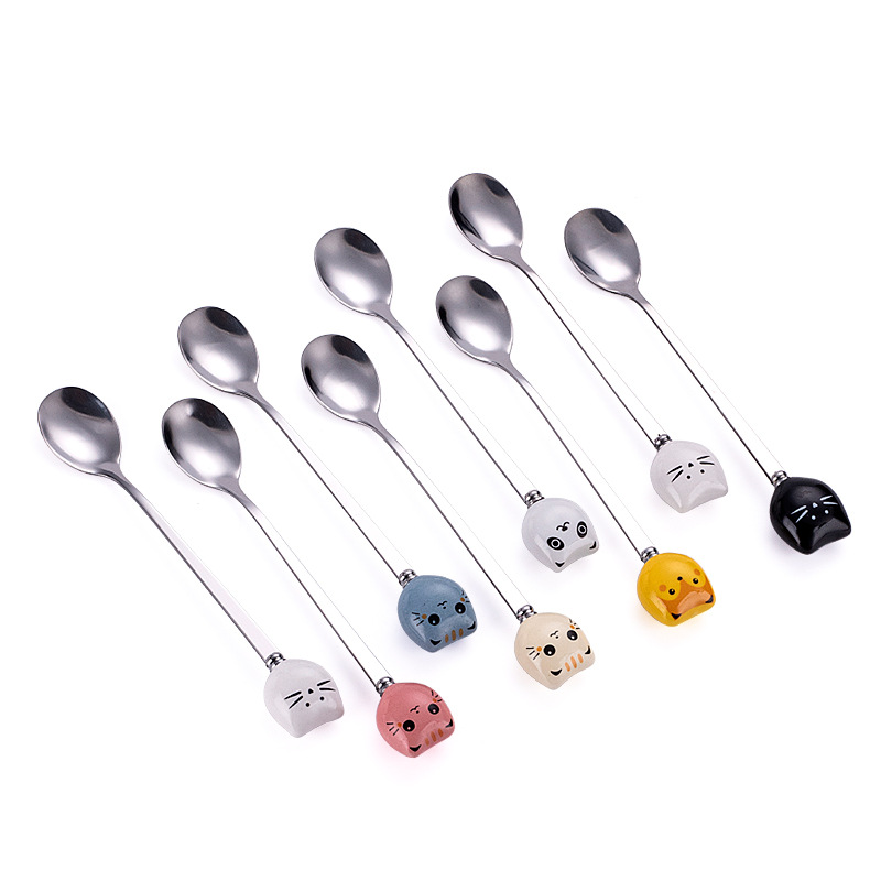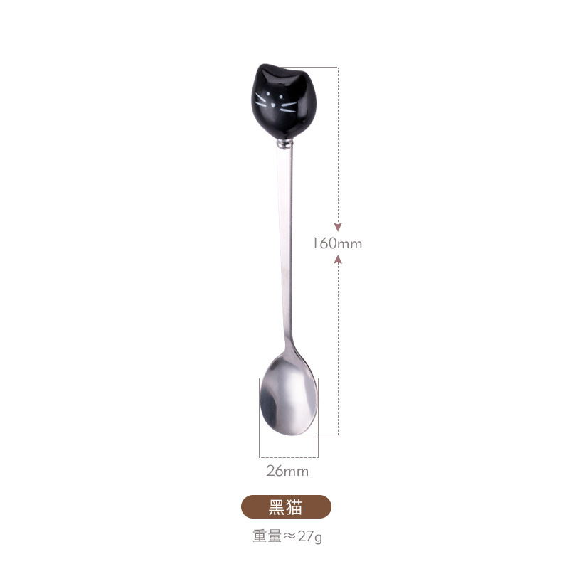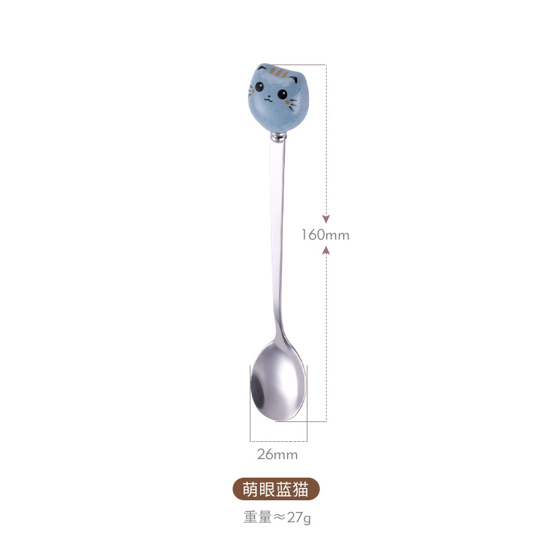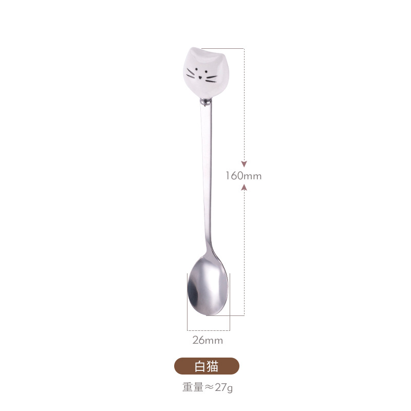 新款陶瓷卡通猫咪不锈钢餐具创意甜品勺家用儿童调羹不锈钢咖啡勺