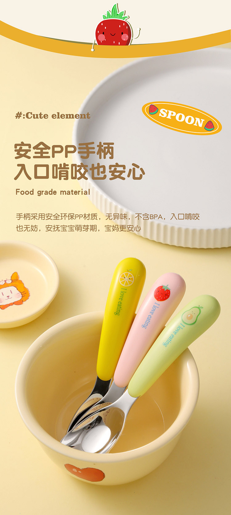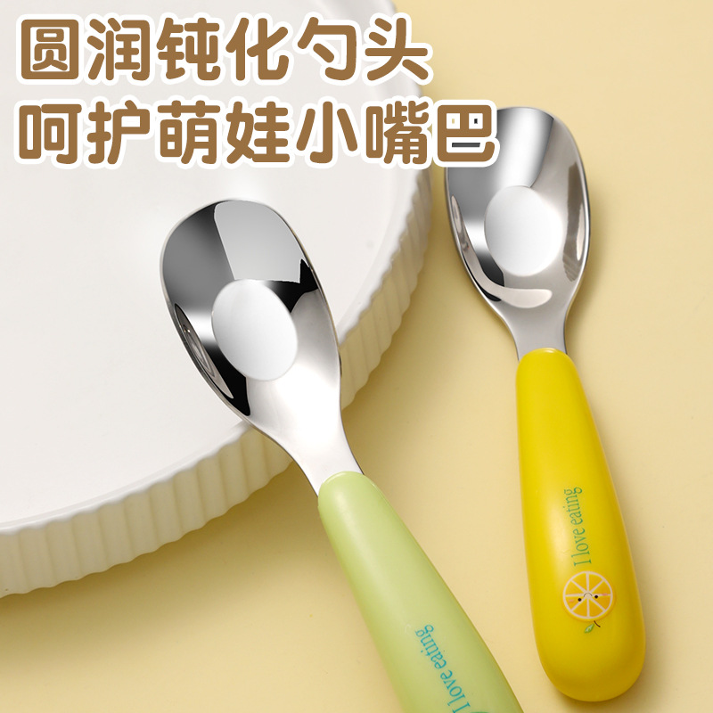 316L不锈钢元宝勺儿童勺子宝宝自主进食吃饭勺辅食训练汤勺餐具