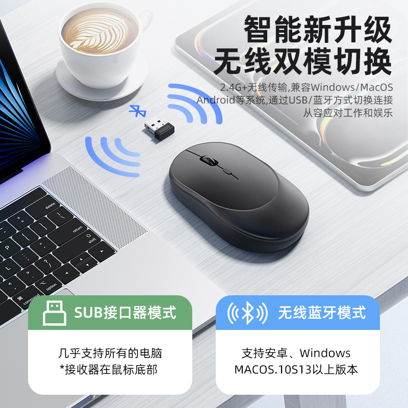 平板电脑无线鼠标—2.4G+蓝牙5.2双模—磨砂黑