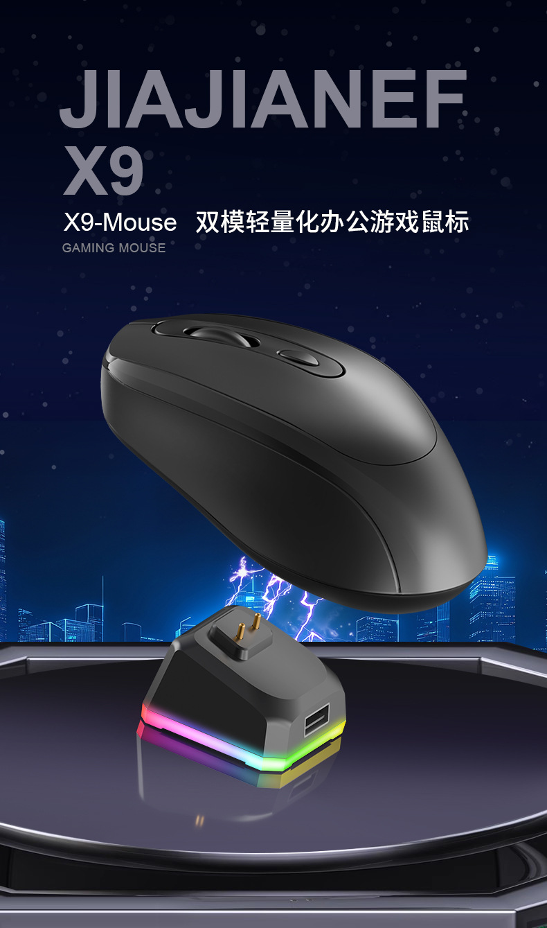 X9鼠标轻量化办公电竞游戏双模无线蓝牙鼠标充电底RGB