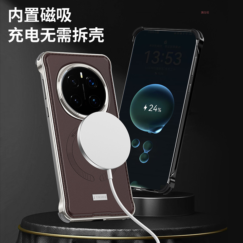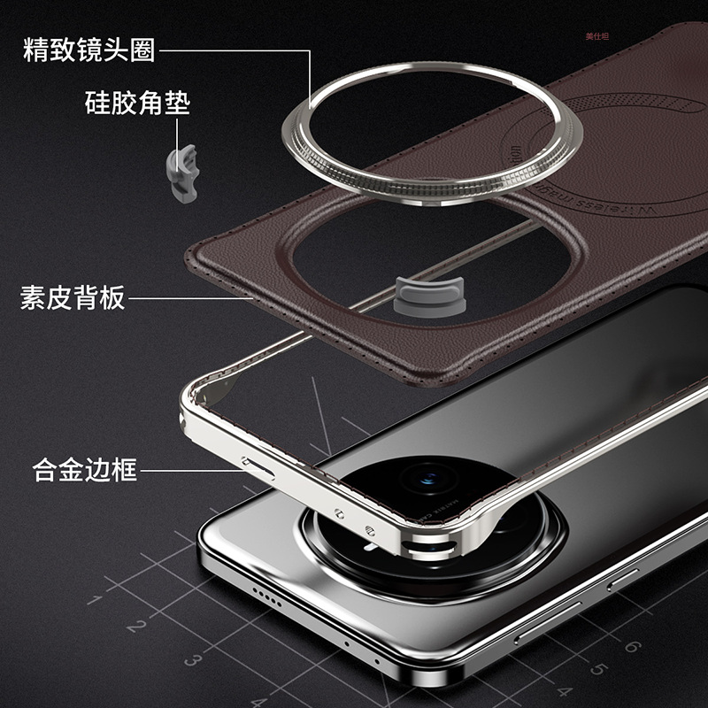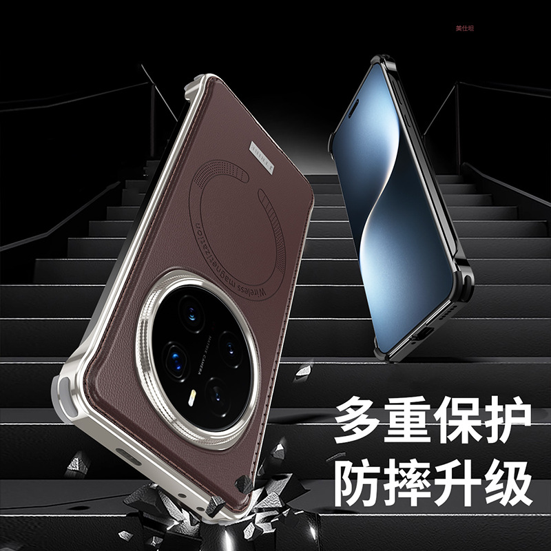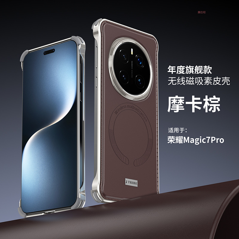 适用荣耀magic7pro手机壳金属无边框Magic7四角防摔磁吸300素皮套