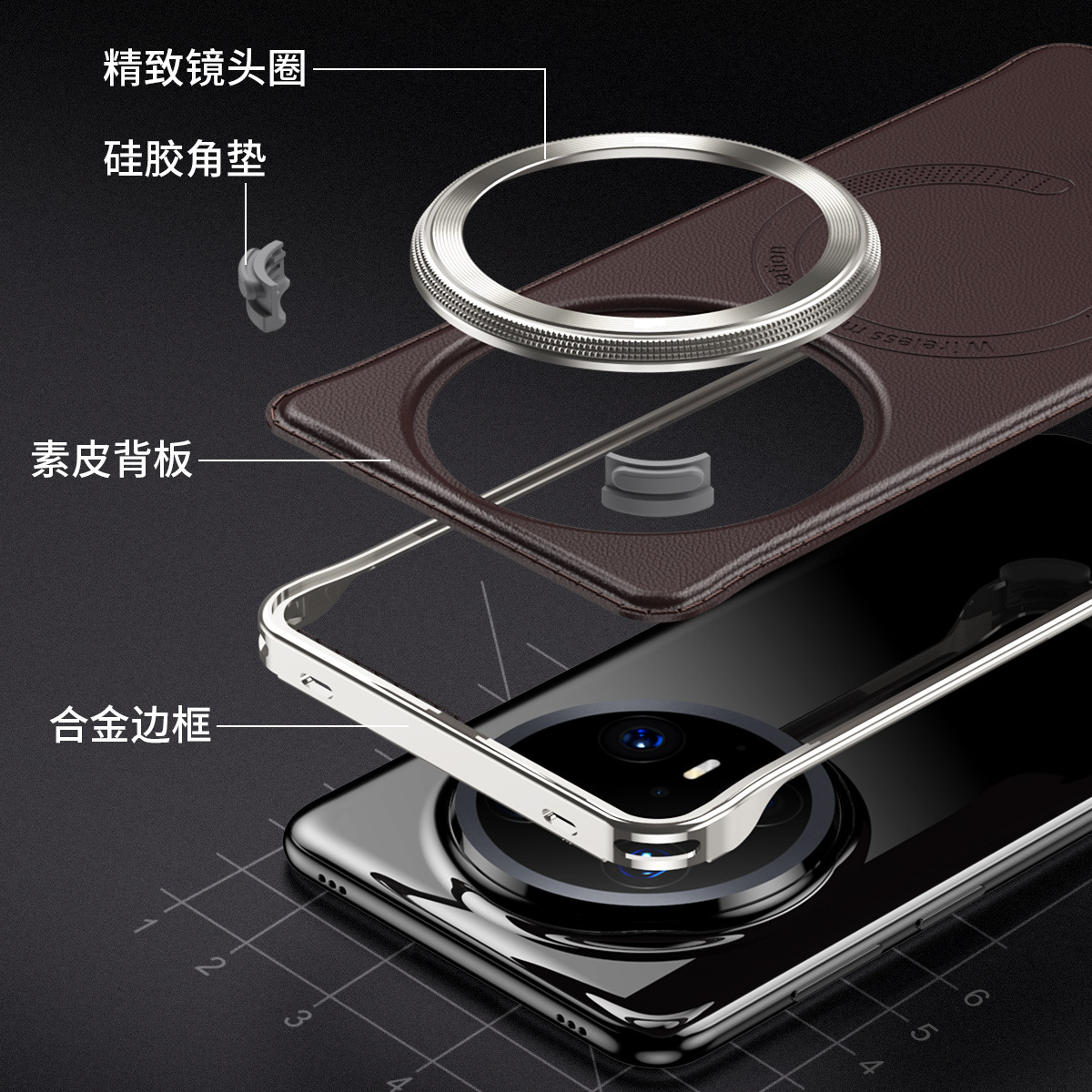 华为mate70pro素皮手机壳Pura80金属无边框磁吸M60商务防摔壳