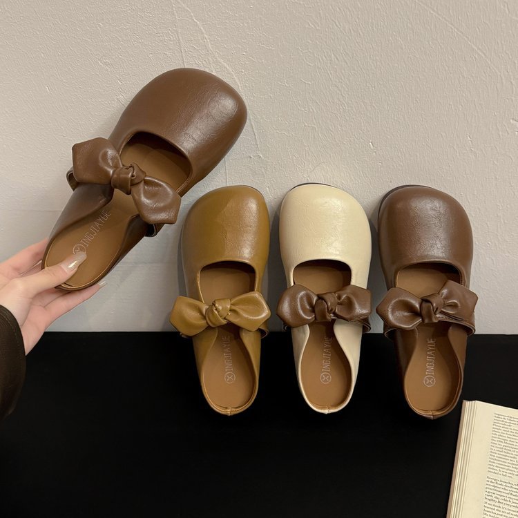 蝴蝶结包头半拖鞋女外穿2025春夏新款玛丽珍半托单鞋平底凉拖鞋