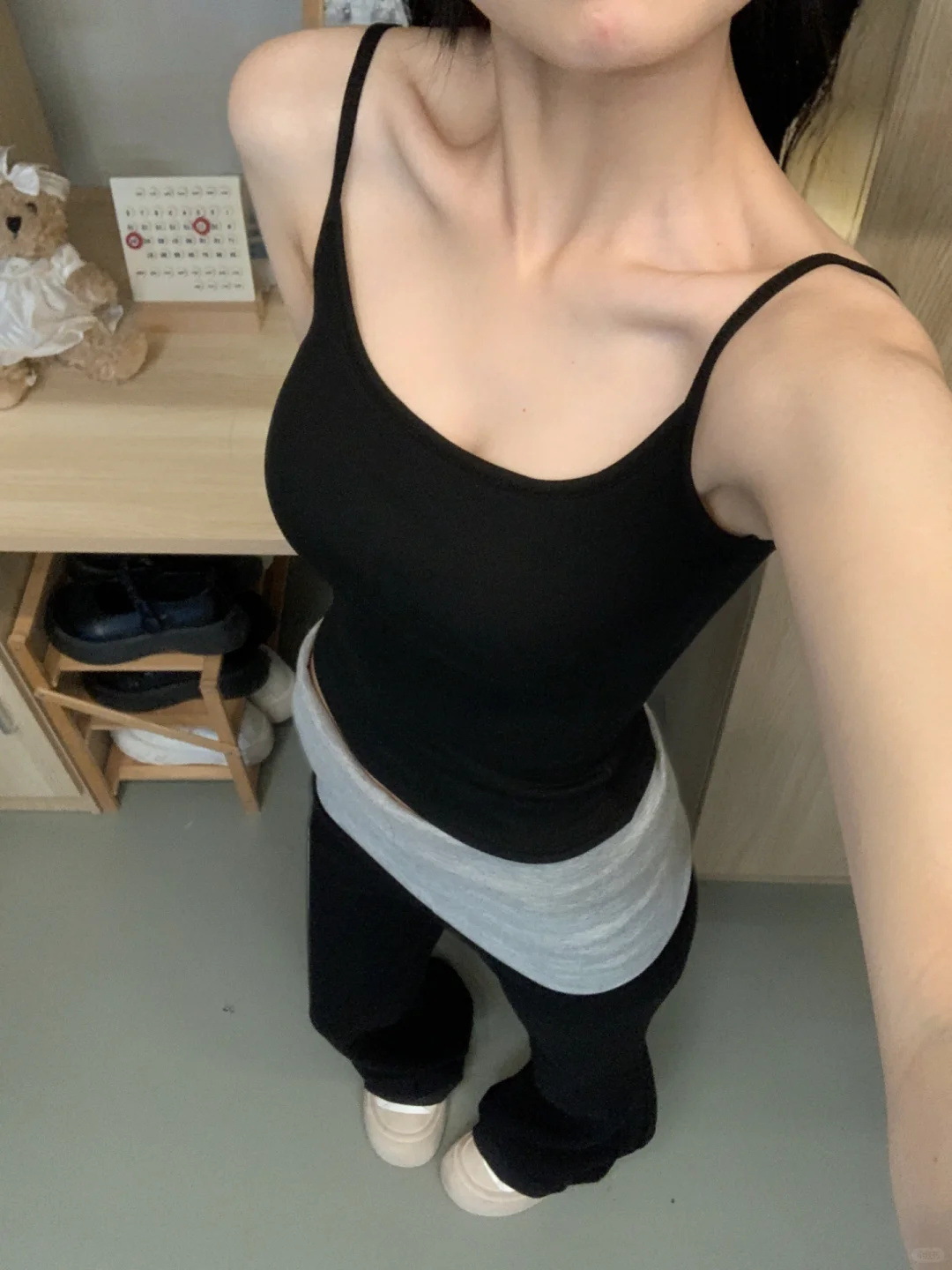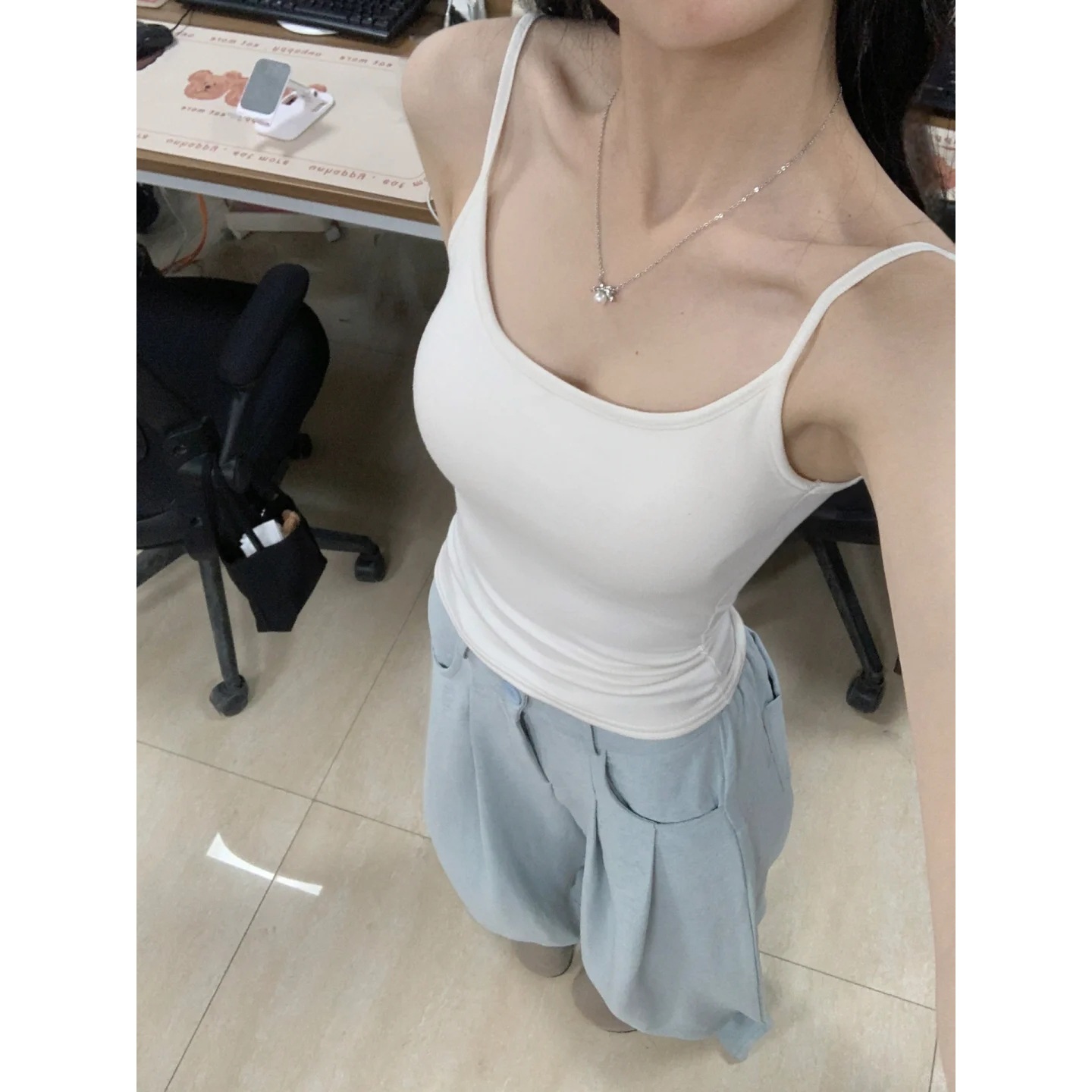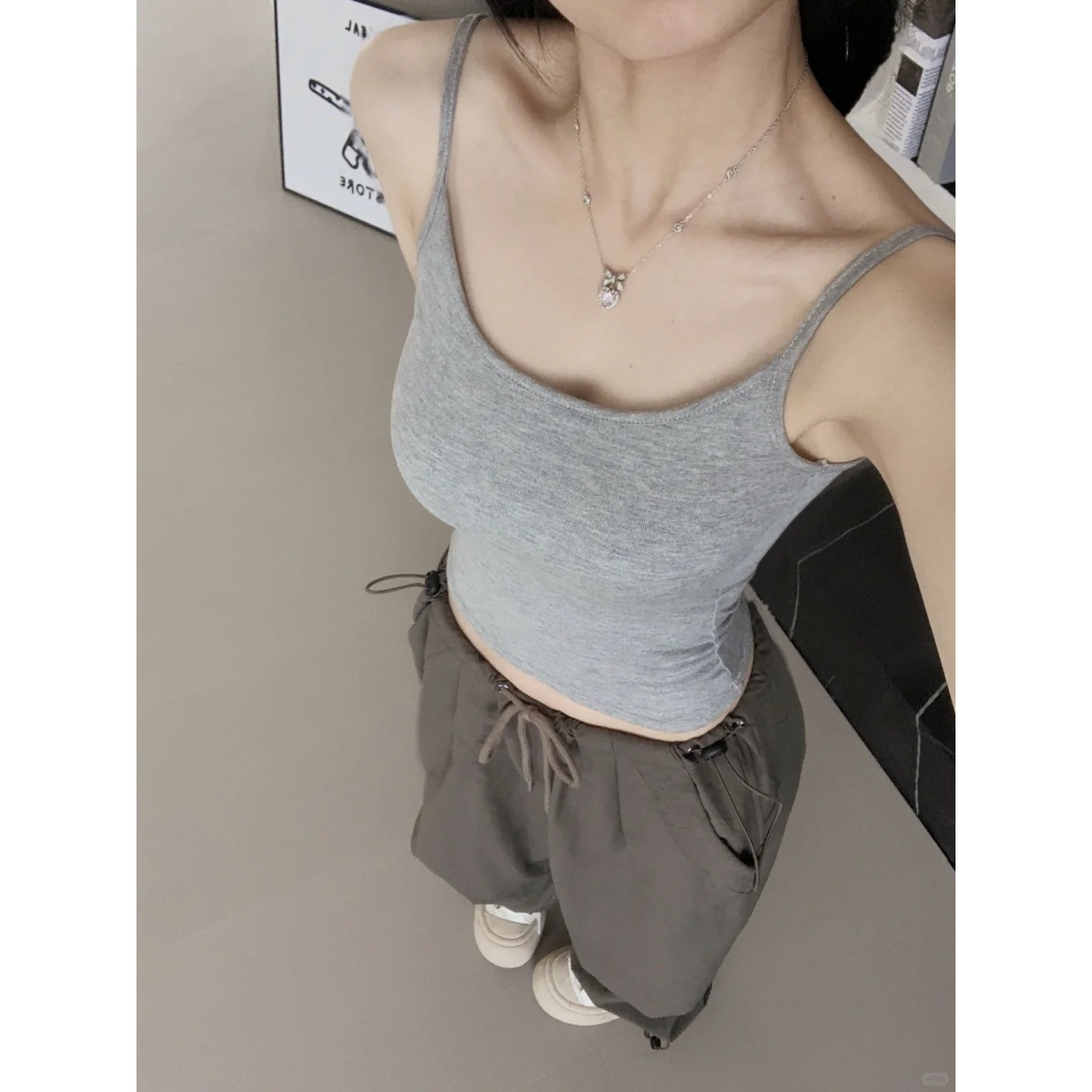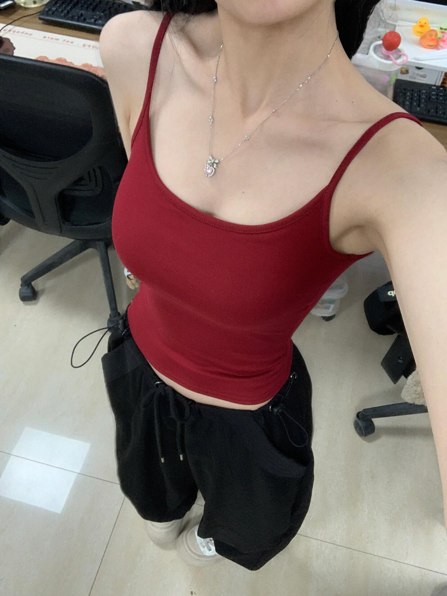 红色显白吊带背心女夏季U领带胸垫内搭防走光修身美背bm辣妹上衣