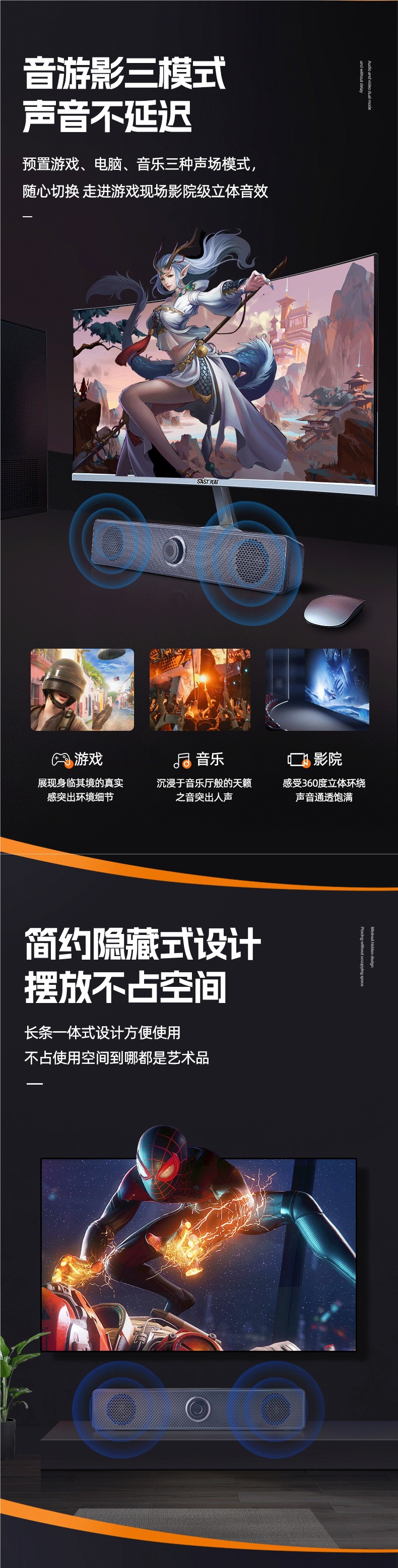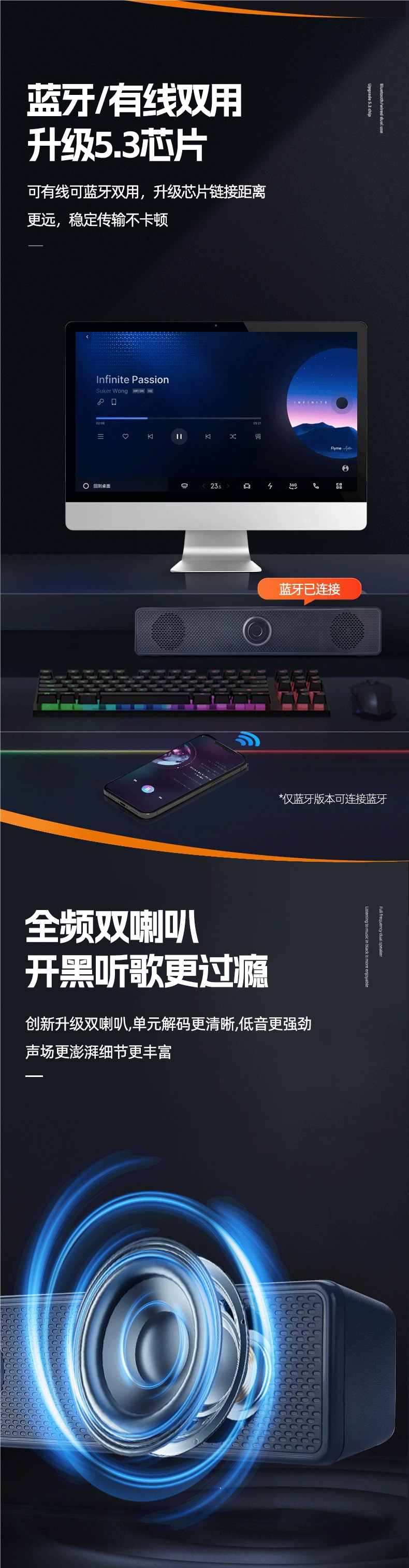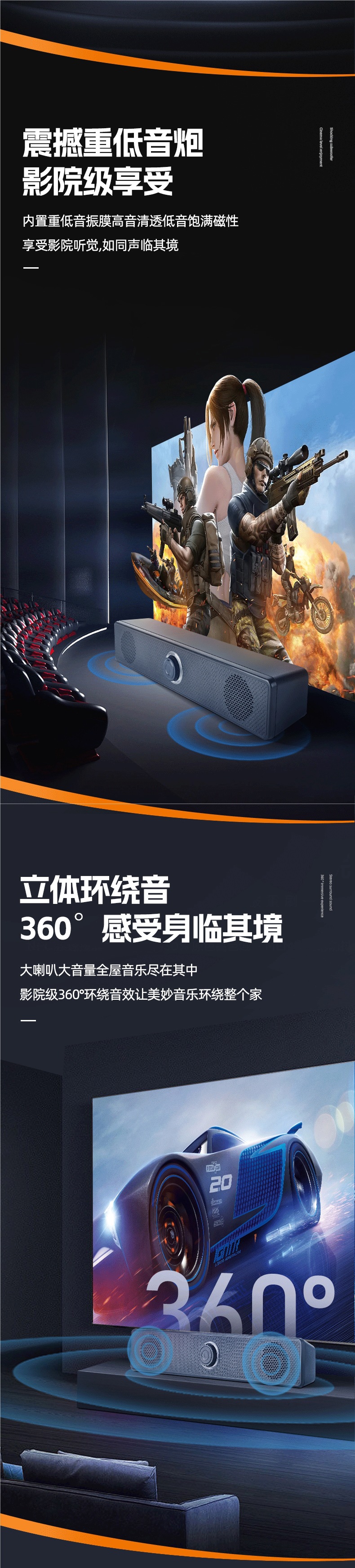 - 【官方有线顶配大音量】防磁防干扰+音效提升100%+有线环绕链接+EQ进口音效