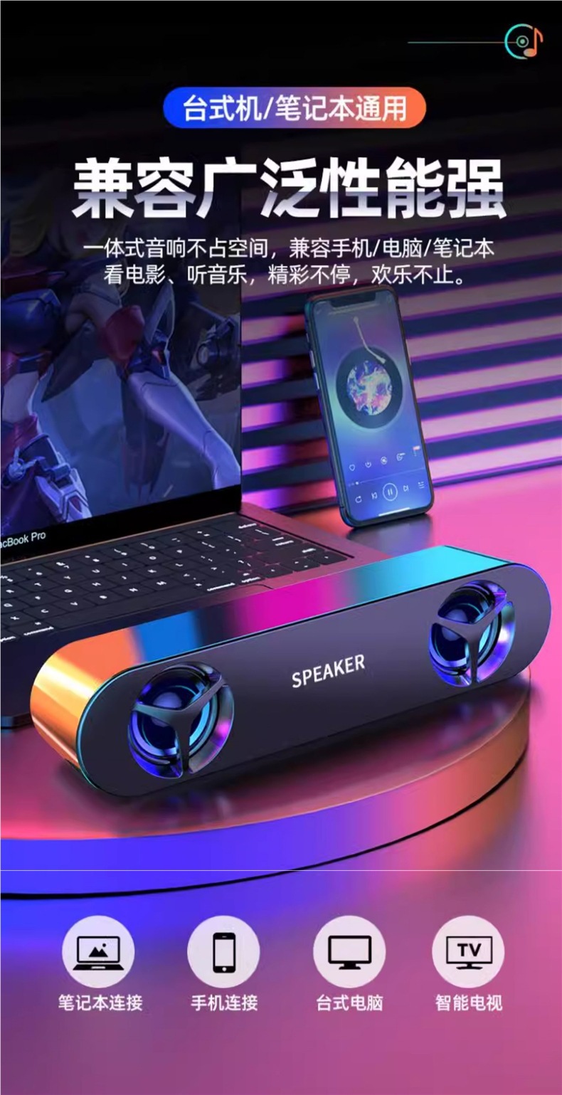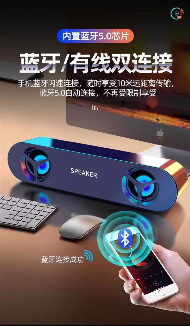 顶配蓝牙炫光版—【全频喇叭+双模式+9D环绕音+LED流光】可插线+可蓝牙