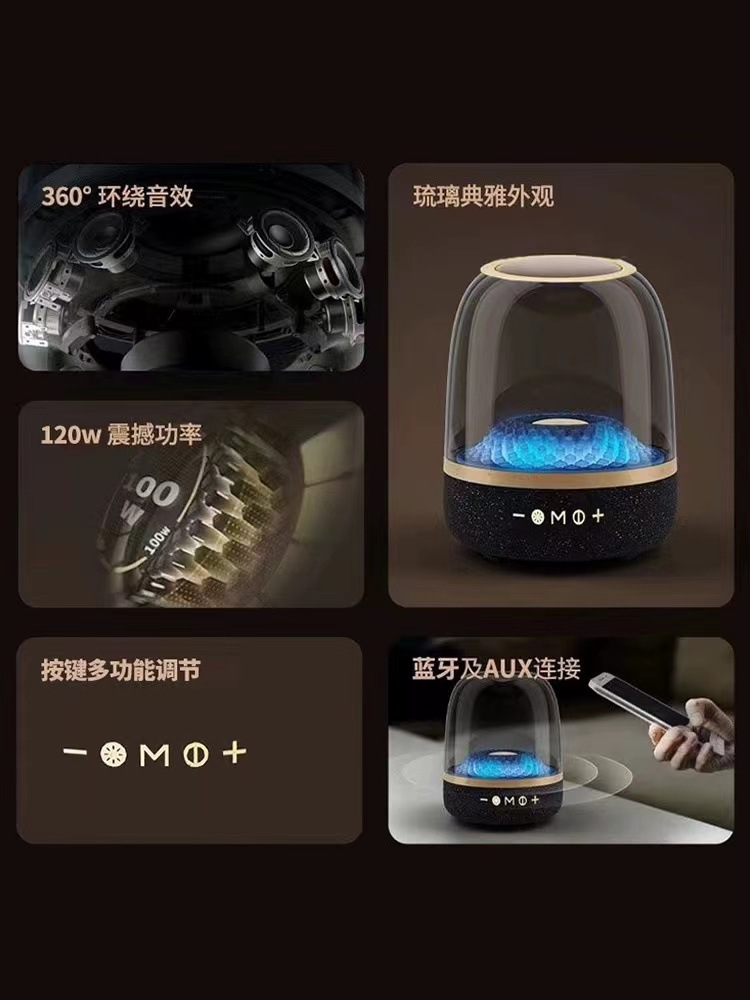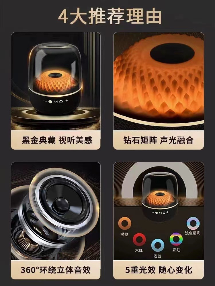 新款蓝牙音箱炫彩低音炮七彩家庭音响环绕透明琉璃音响
