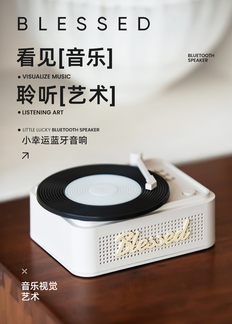 小幸运蓝牙音响转盘无线迷你便携插卡唱片桌面创意蓝牙音箱