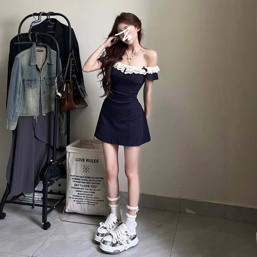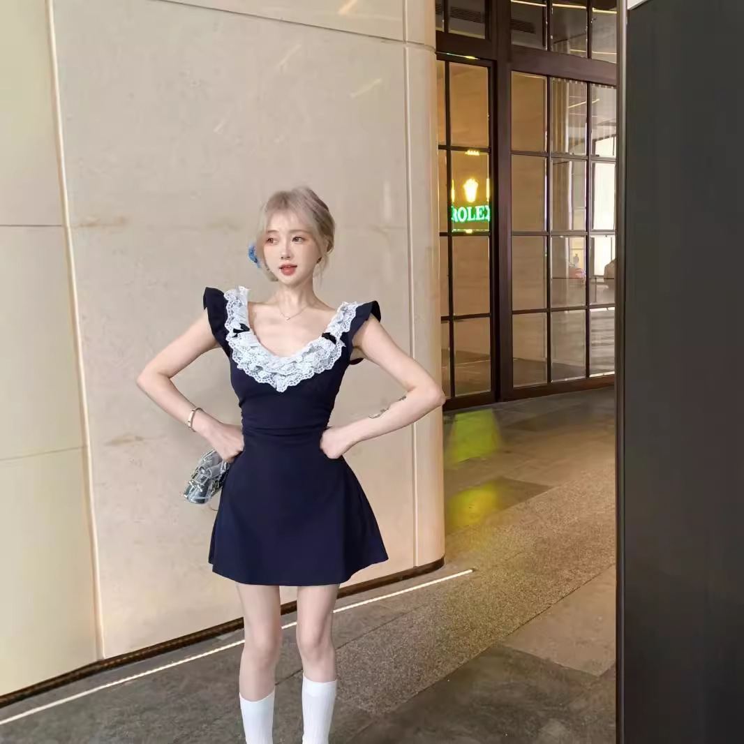 蕾丝拼接辣妹连衣裙镂空设计感夏季名媛纯欲风收腰裙子女夏季新款