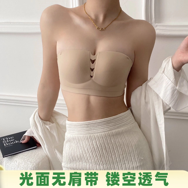 小胸聚拢显大无肩带内衣女薄款上托防滑防下垂收副乳美背隐形文胸
