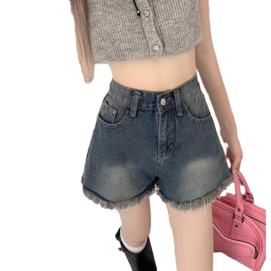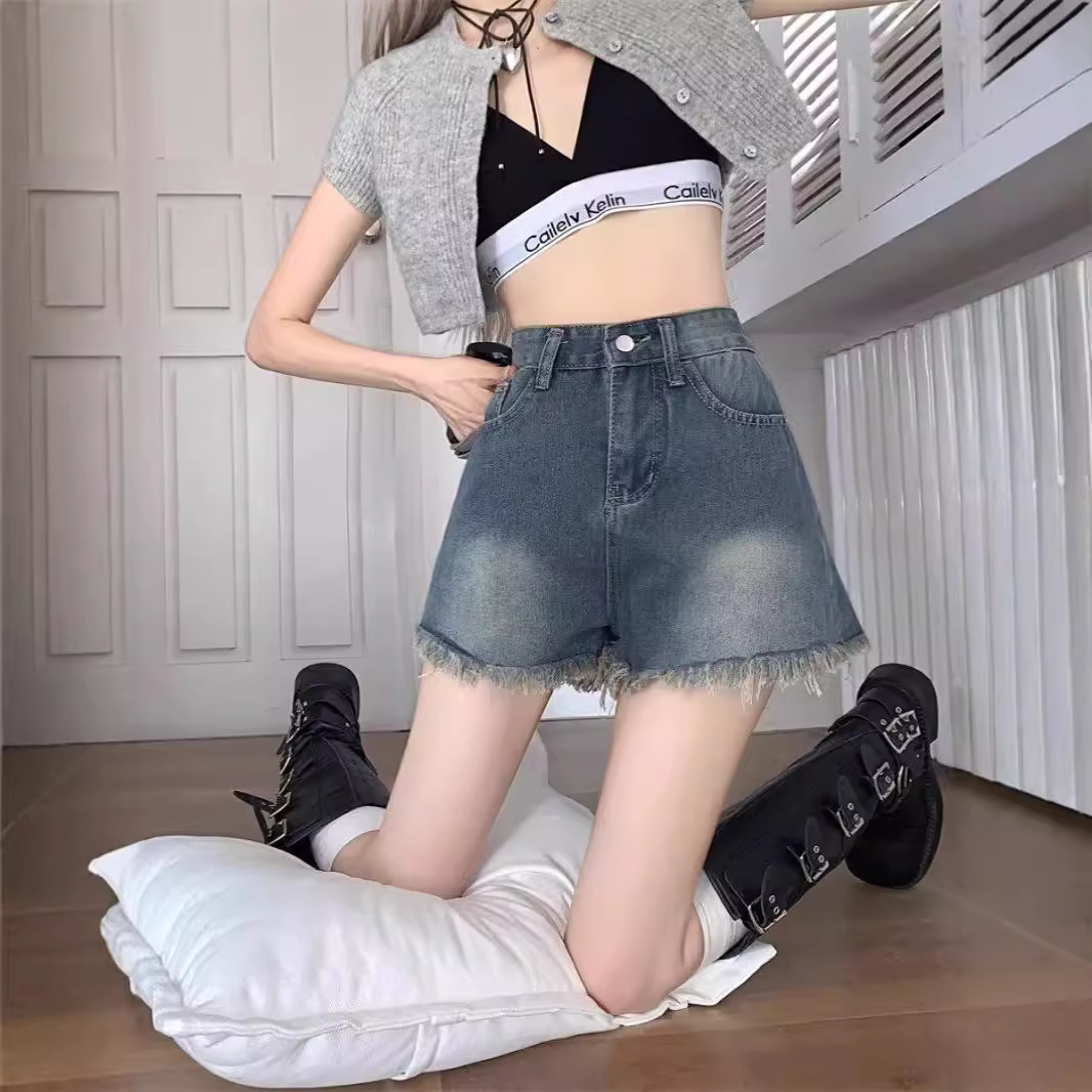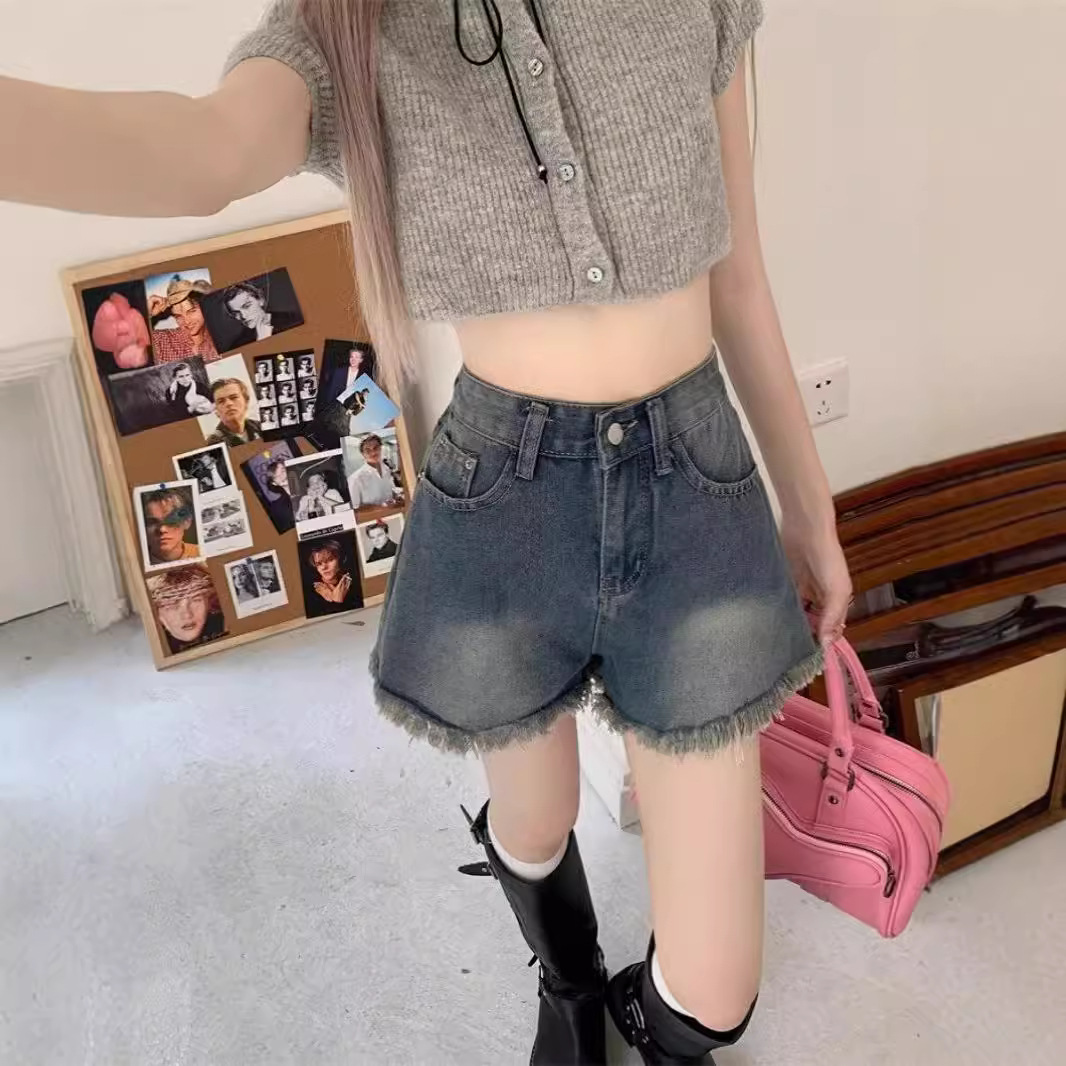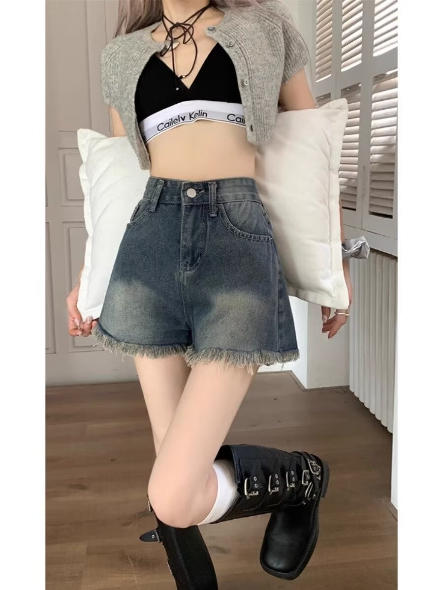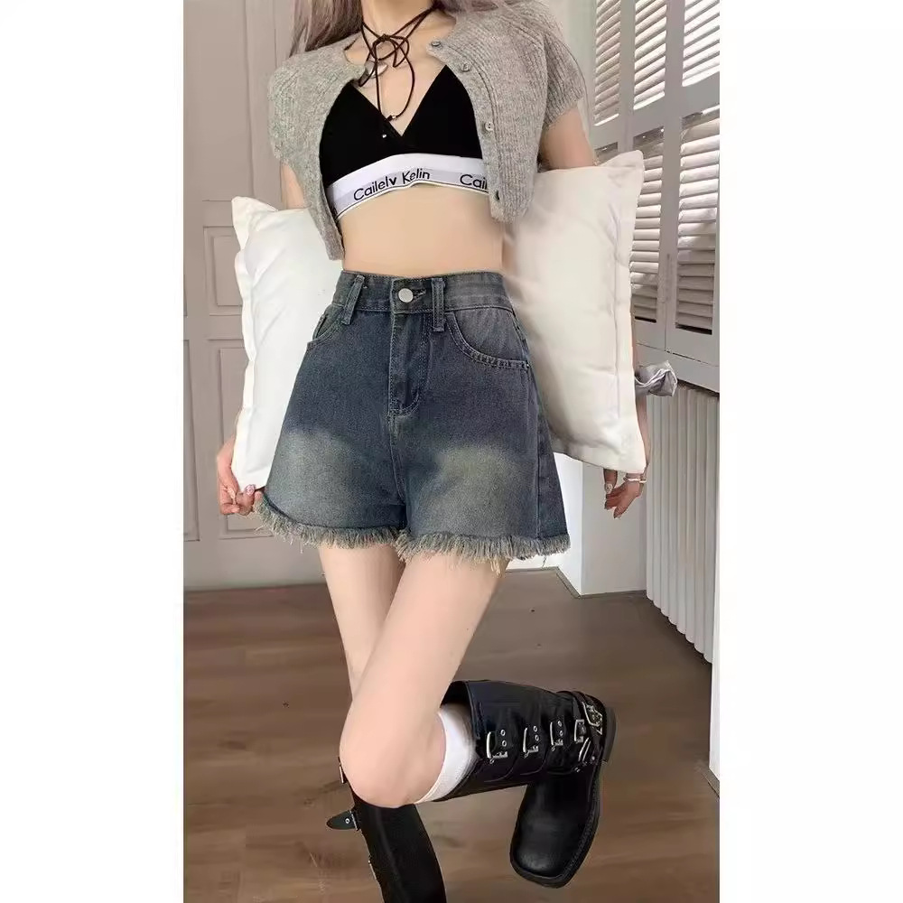 耐磨秋季长裤毛边牛仔短裤女夏季薄款渐变设计感五分裤子美式高街