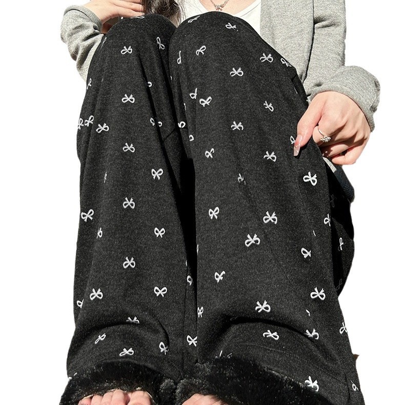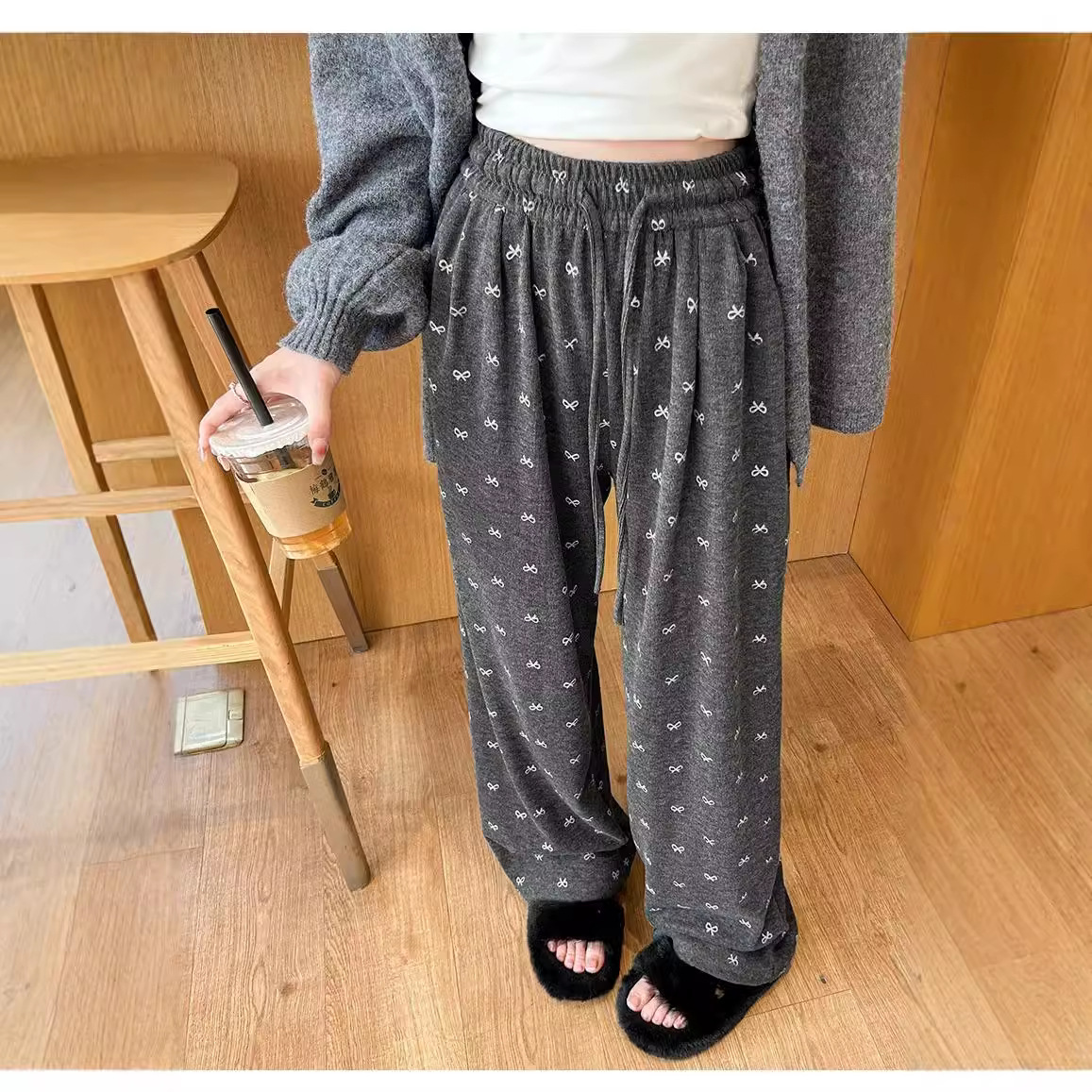蝴蝶结糯米裤女秋冬季加绒加厚垂感直筒休闲阔腿裤高腰显瘦拖地裤