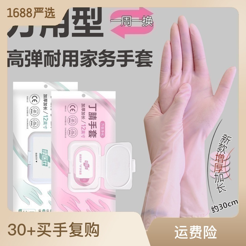 绿医仕食品级丁腈不易破家务厨房洗碗橡胶一次性加长防水高弹手套