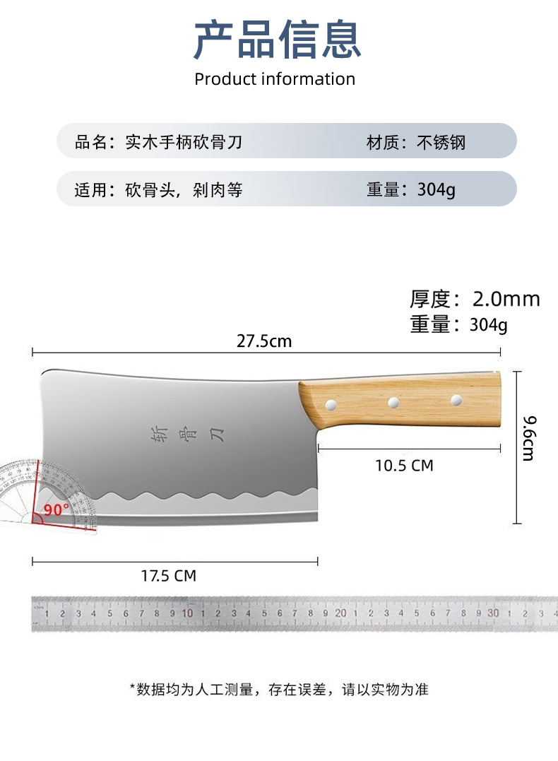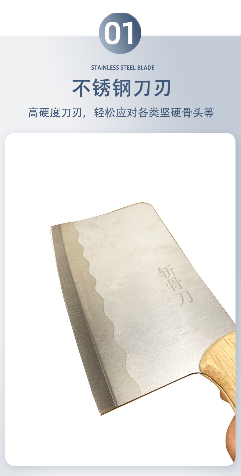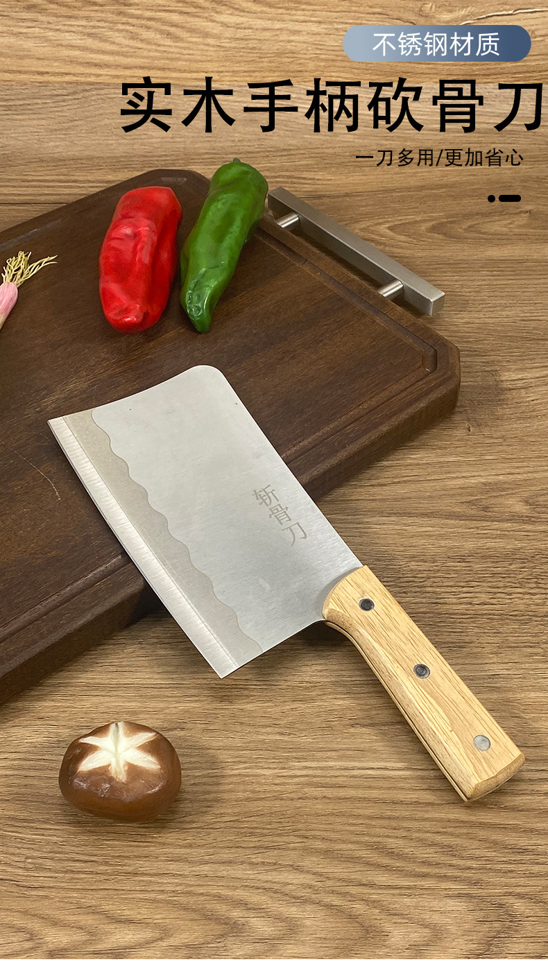 实木柄家用斩骨刀砍骨头刀家用菜刀加厚厨房剁肉刀锋利屠夫刀