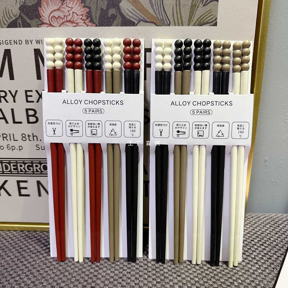 G5PA高颜值糖豆复古合金筷子套装家用耐高温防霉分餐筷洗碗机一人