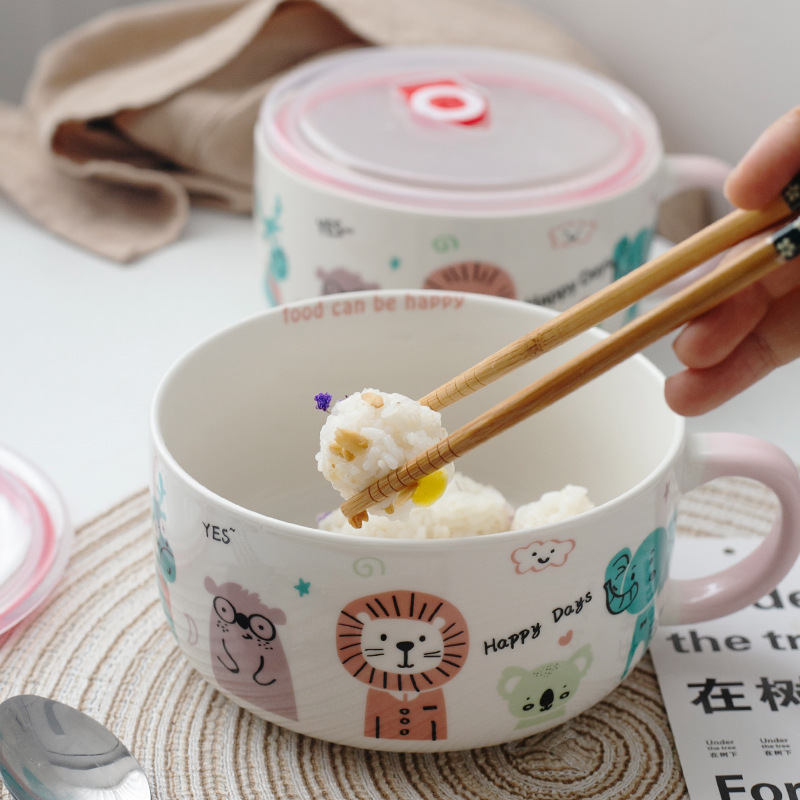 陶瓷泡面碗带盖便当盒上班族饭盒微波炉专用密封汤碗保鲜碗带手柄