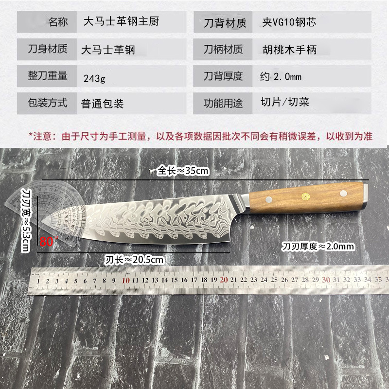大马士革钢菜刀切片刀家用女士切肉切菜刀料理刀西式主厨刀厨房刀