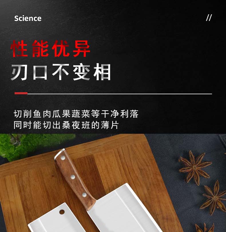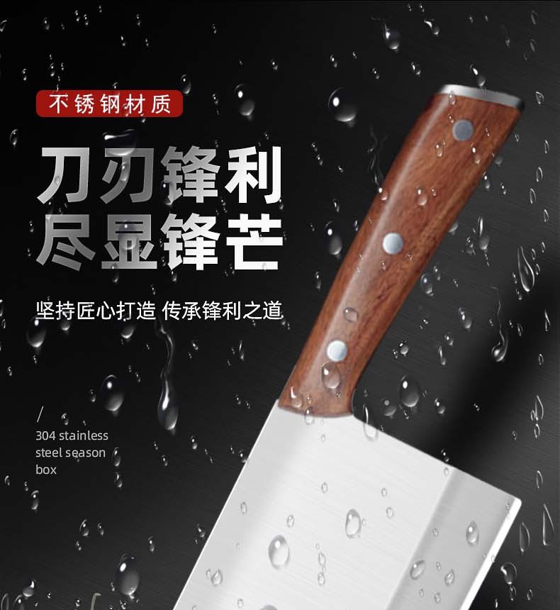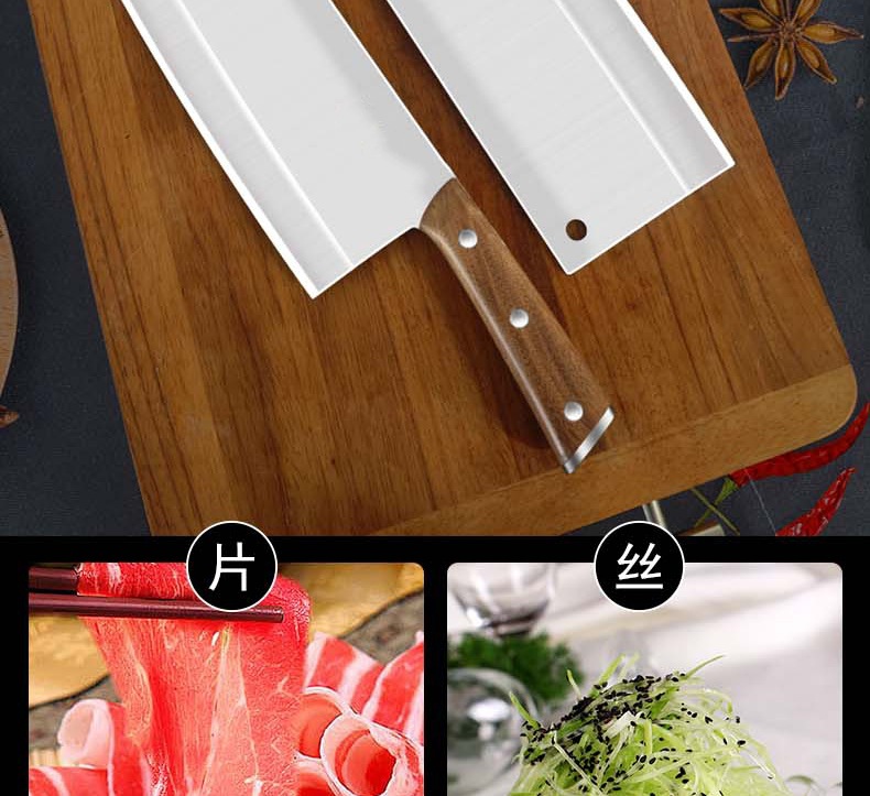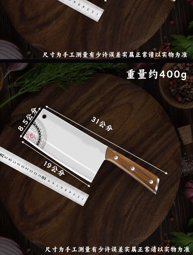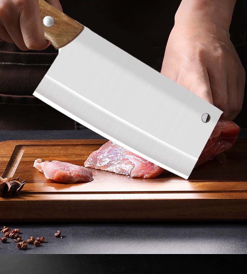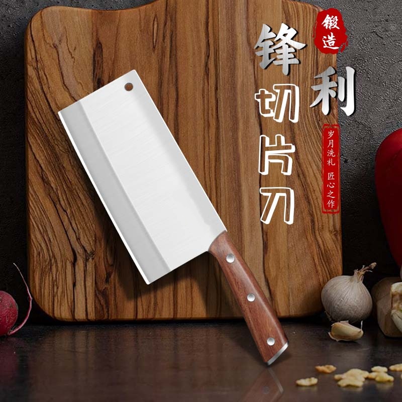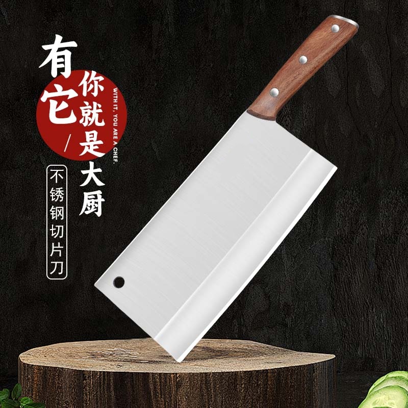 不锈钢切片刀简装厨用刀切菜刀木柄跑江湖切肉刀家用菜刀砍骨刀具