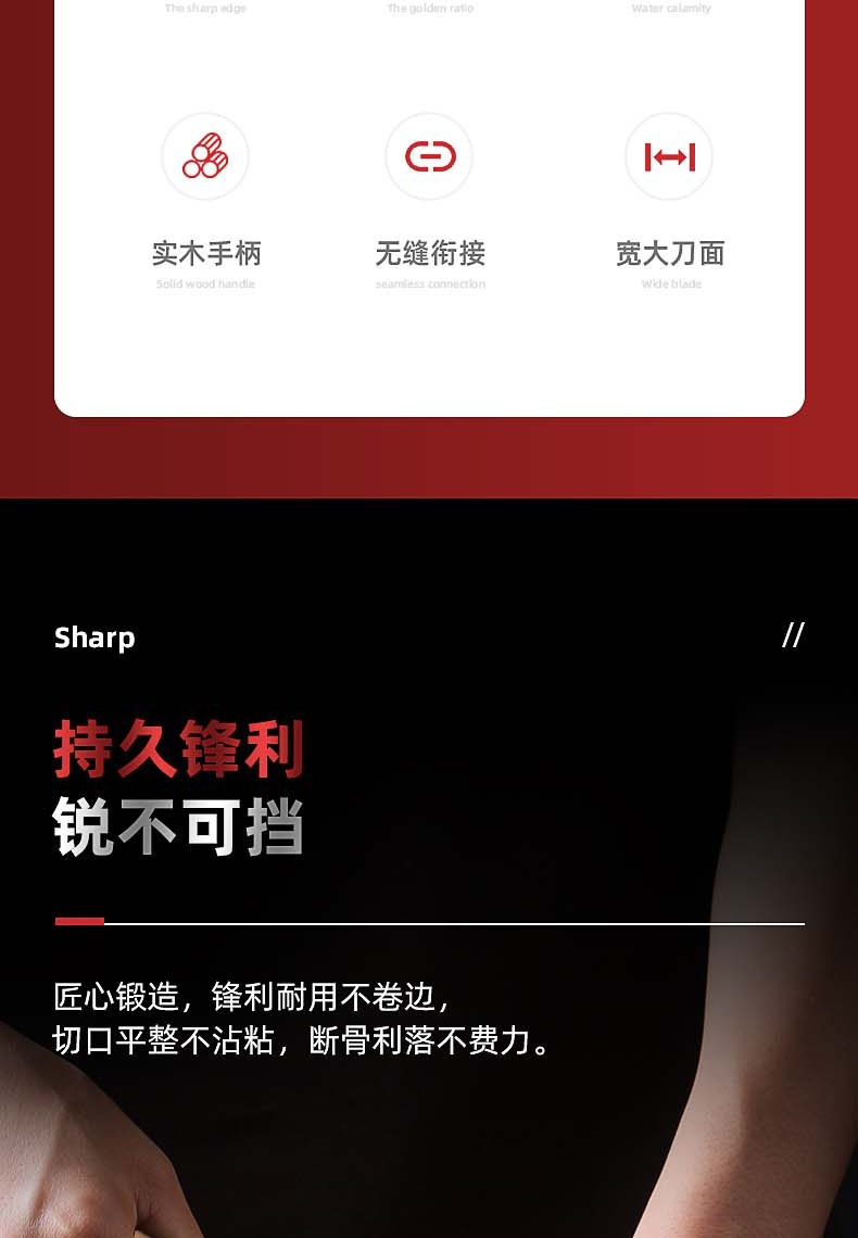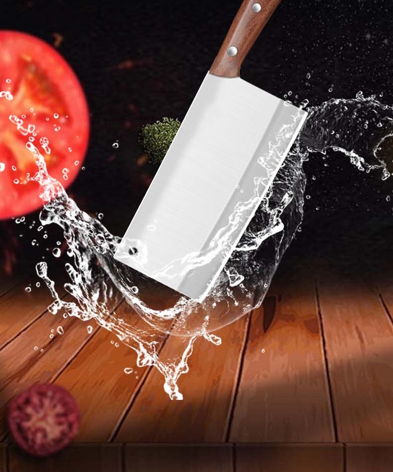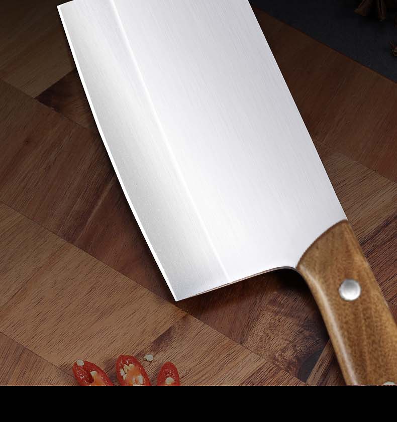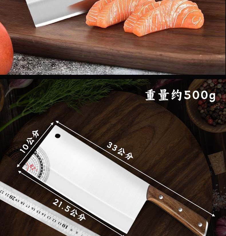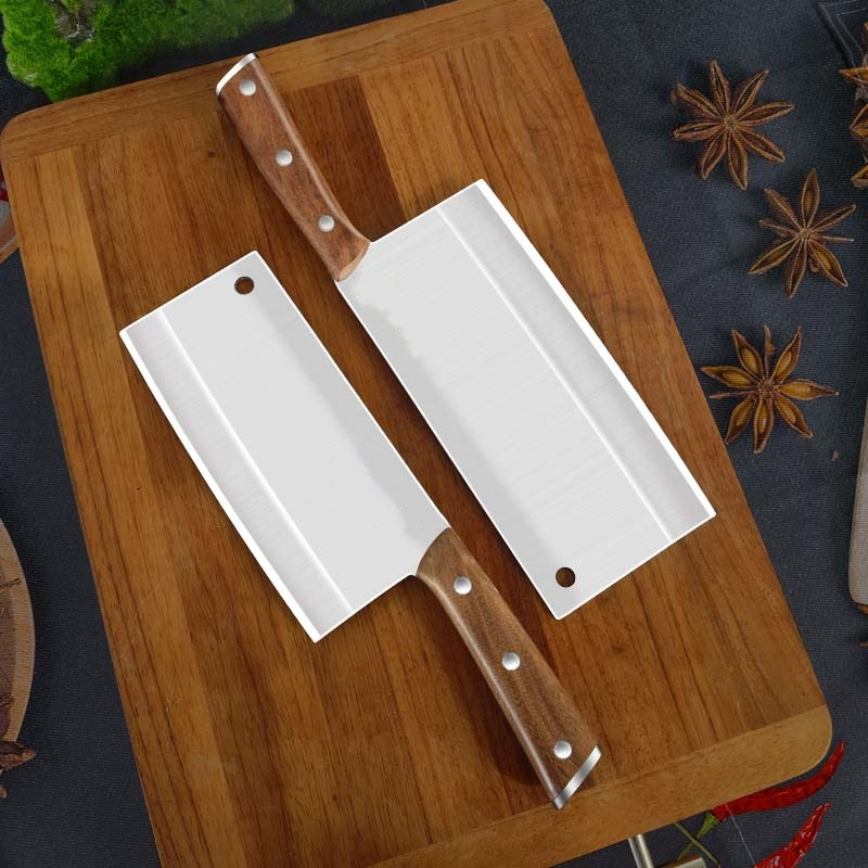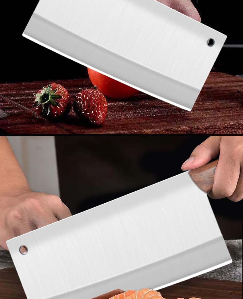 不锈钢切片刀简装厨用刀切菜刀木柄跑江湖切肉刀家用菜刀砍骨刀具