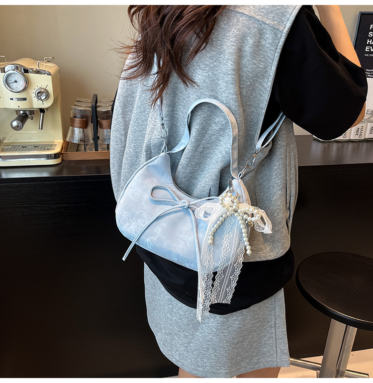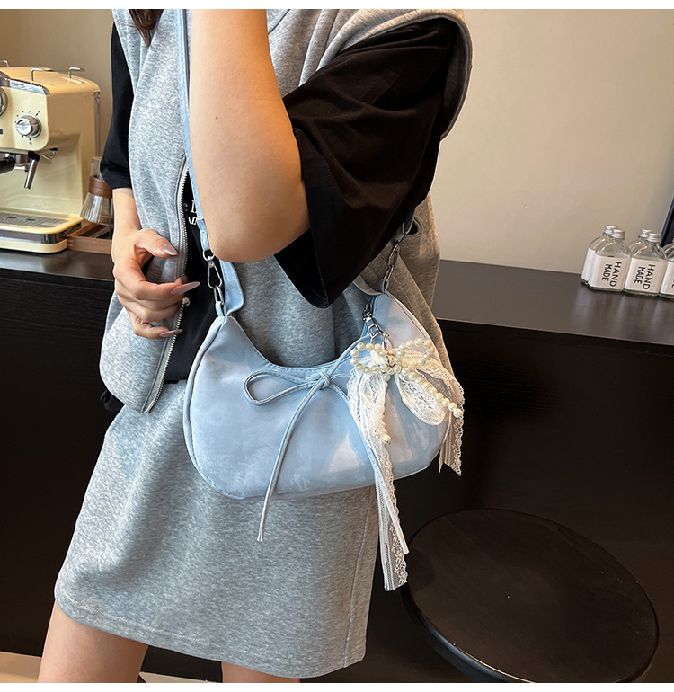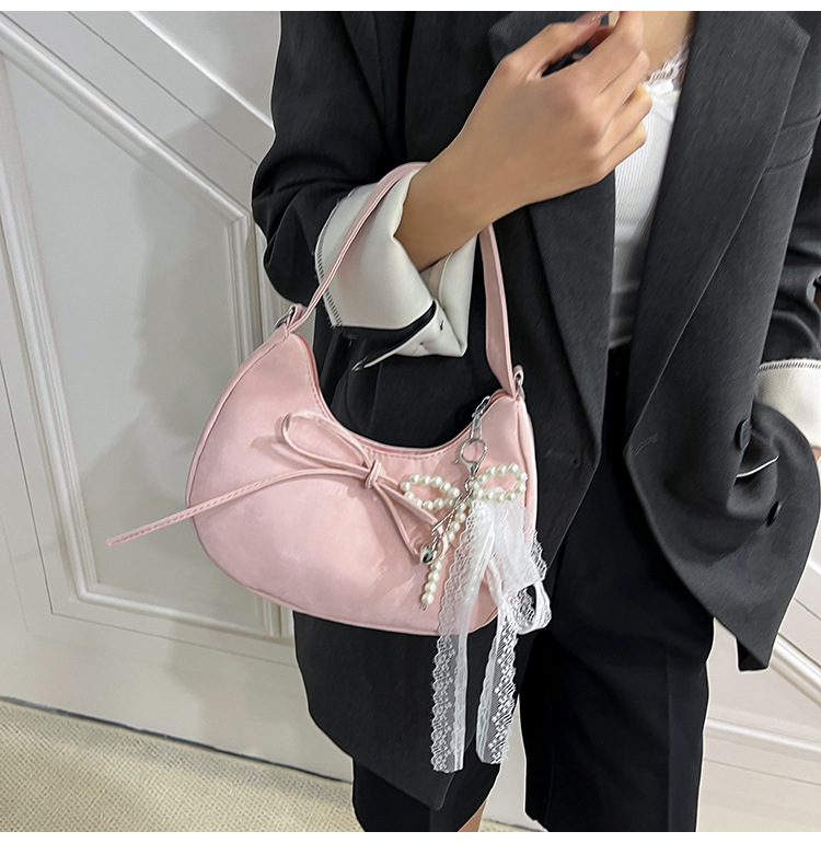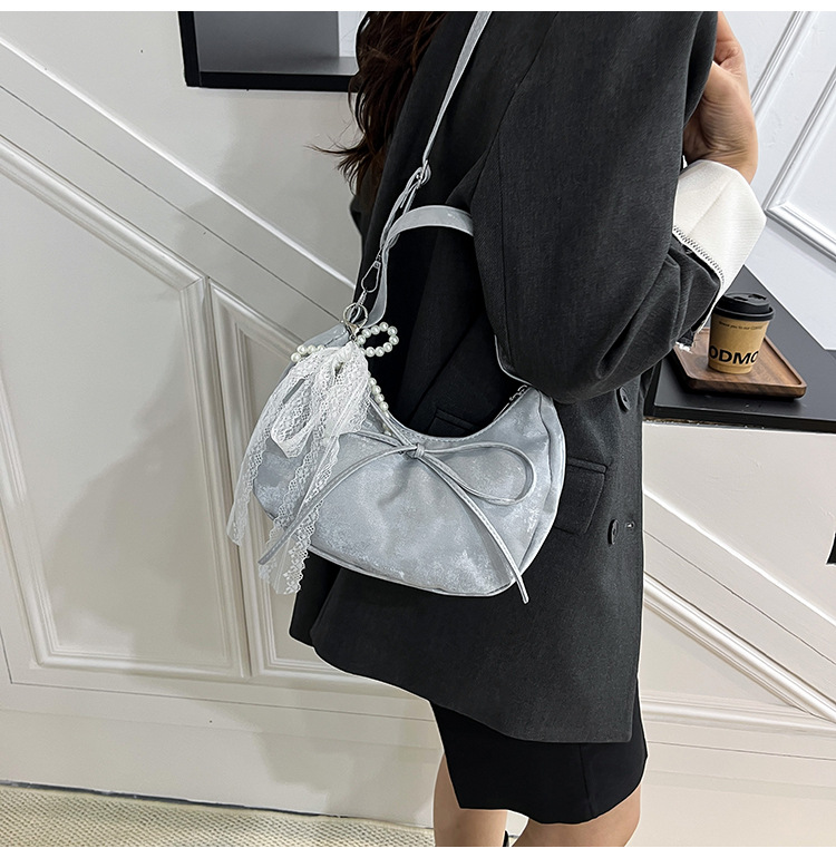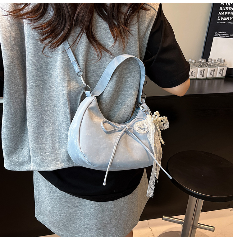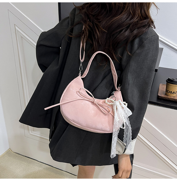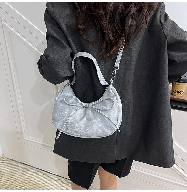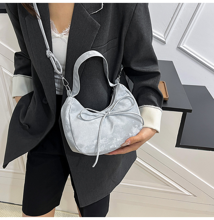 夏季流行纯色腋下包包女2025新款百搭蝴蝶结洋气小清新单肩斜挎包