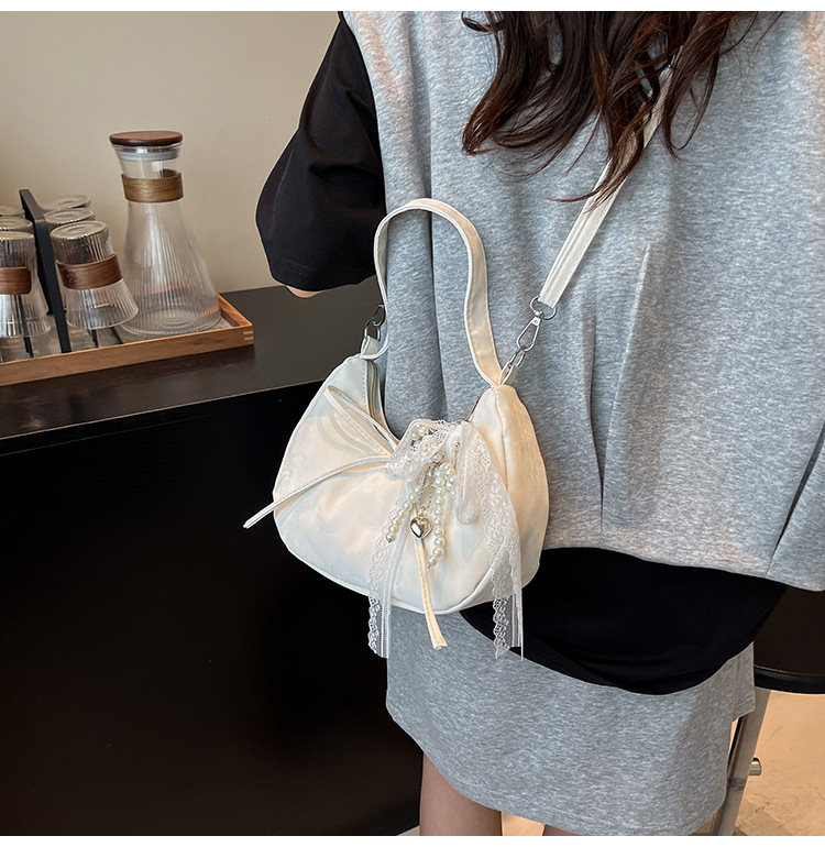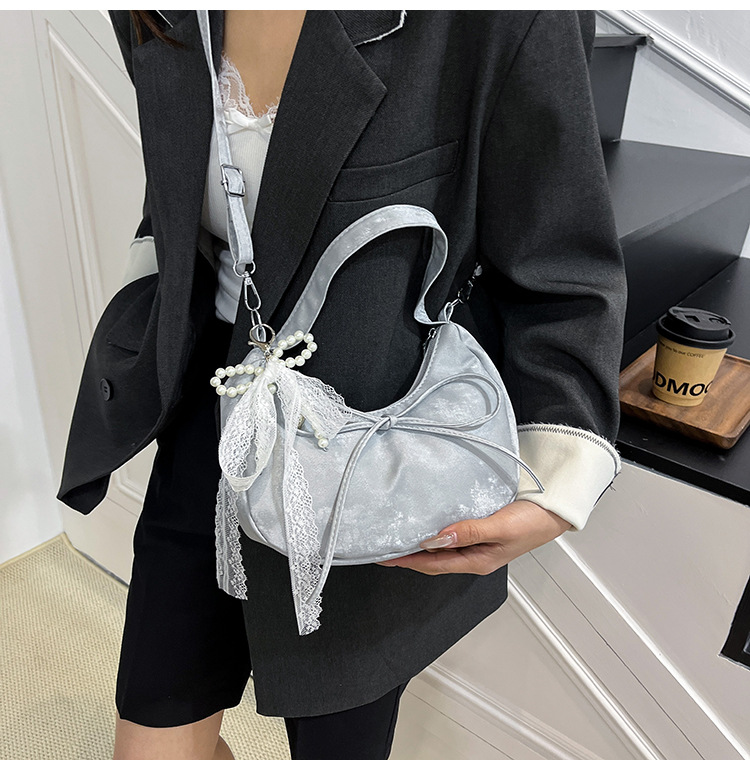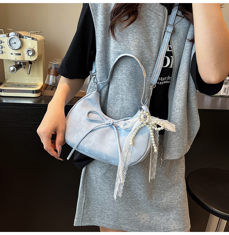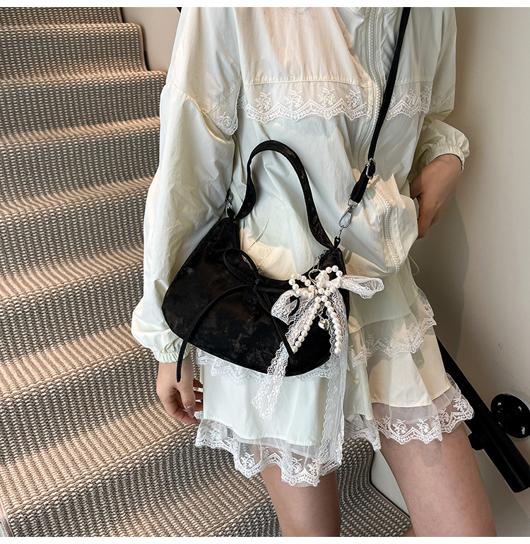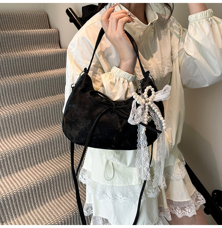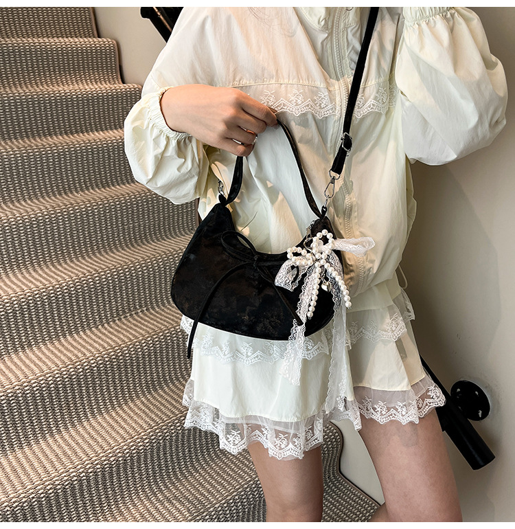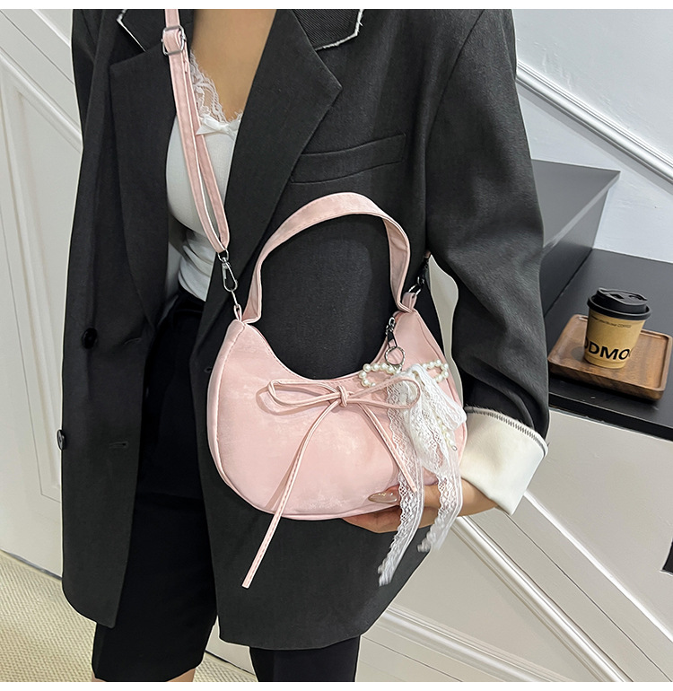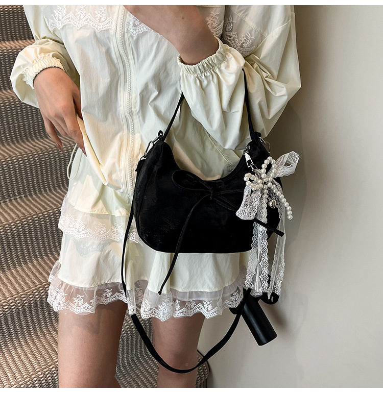 夏季流行纯色腋下包包女2025新款百搭蝴蝶结洋气小清新单肩斜挎包