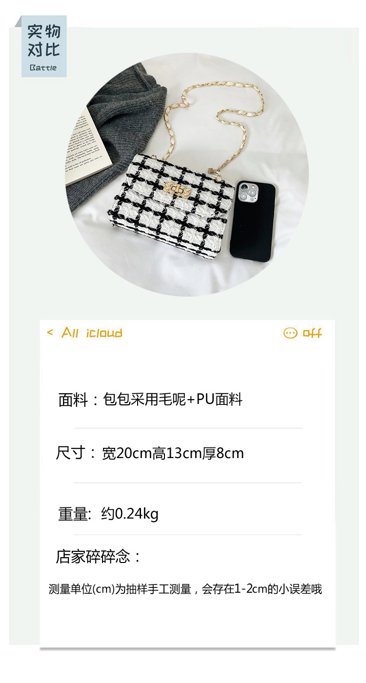 春秋新款小香风呢子包包女时尚潮流链条包质感单肩斜挎小方包
