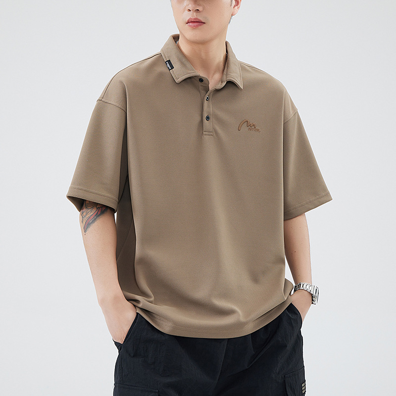 夏季新款简约刺绣短袖polo衫男潮牌简约翻领保罗衫宽松大码半袖潮