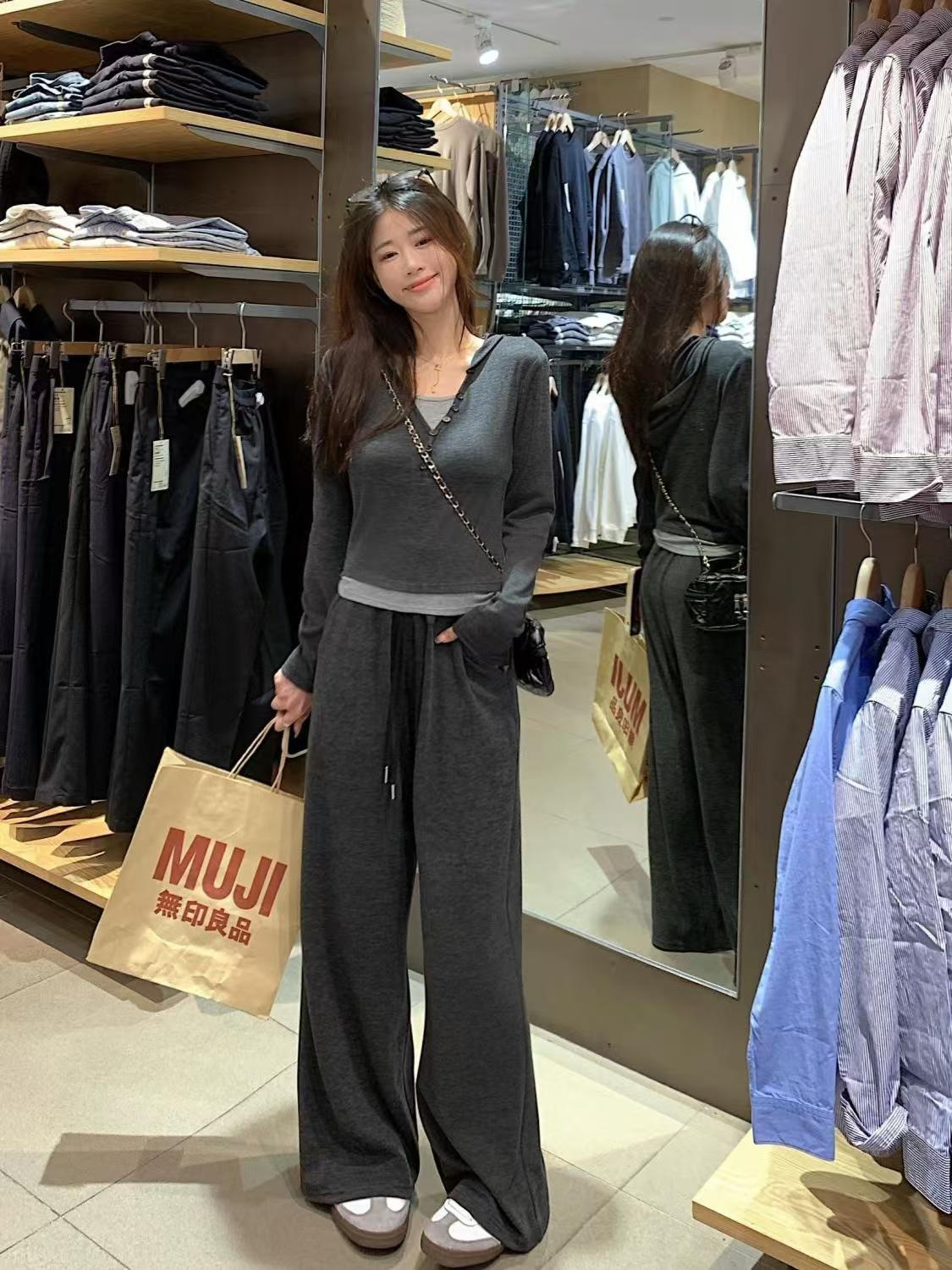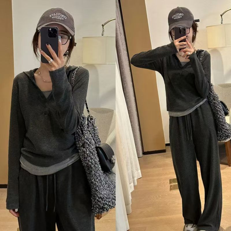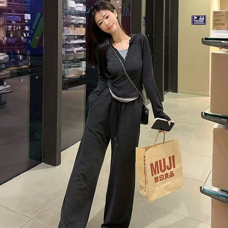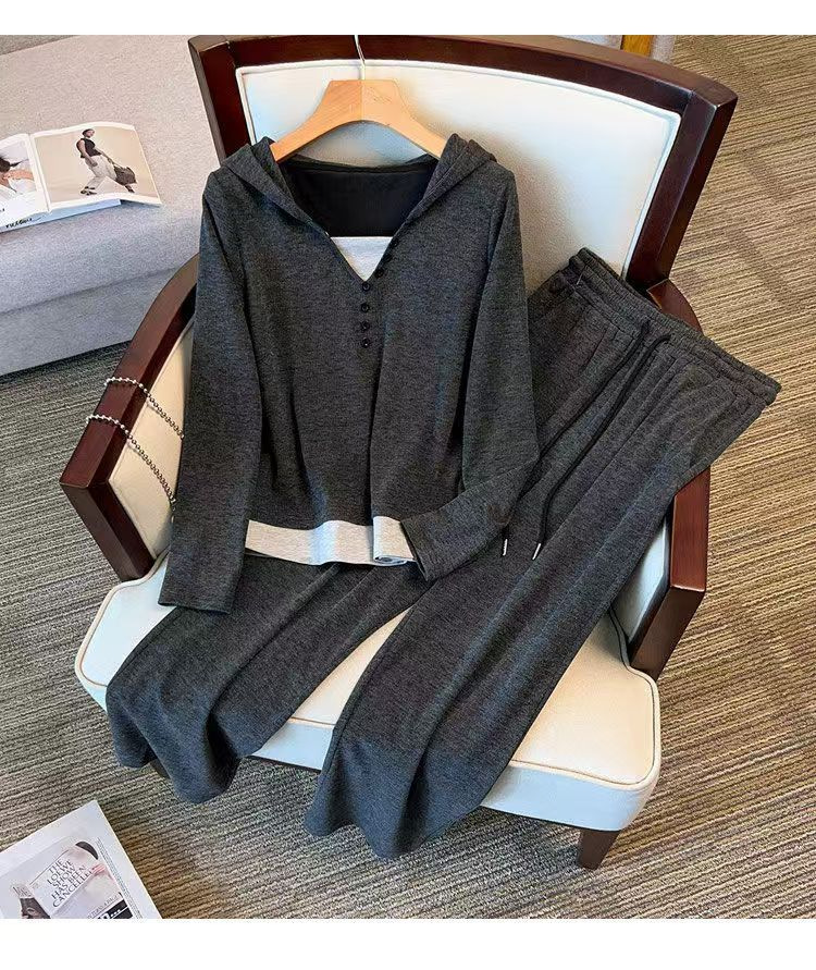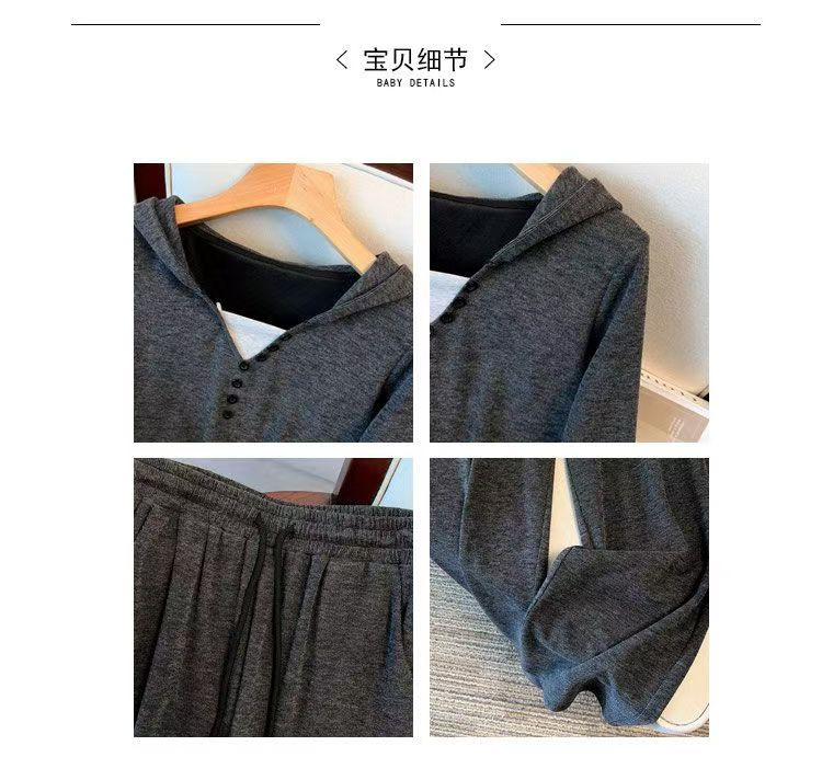 连帽卫衣运动服套装女春秋跑步时尚韩版显瘦上衣休闲三件套阔腿裤