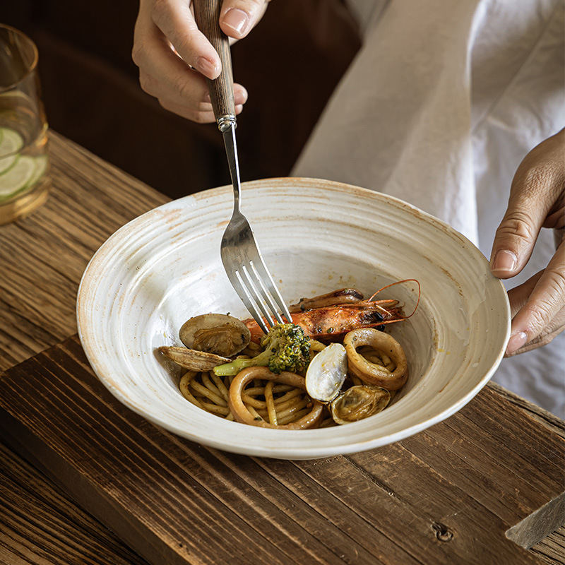 复古螺纹草帽碗陶瓷家用餐具实用碗创意沙拉碗高颜值汤碗大碗
