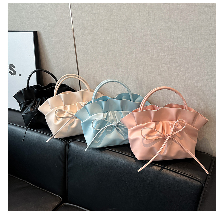 韩系慵懒风大容量托特包女2025夏季绑带蝴蝶结褶皱单肩手提水桶包