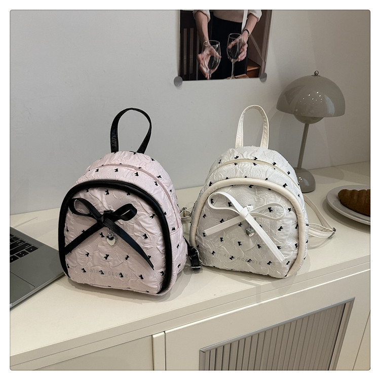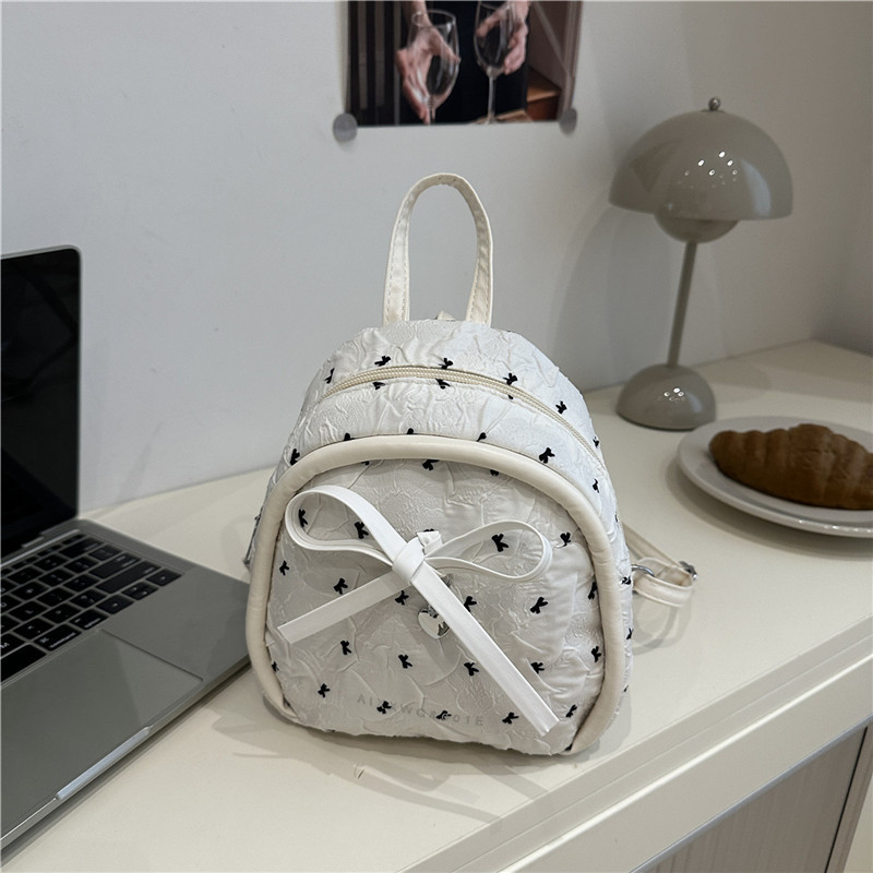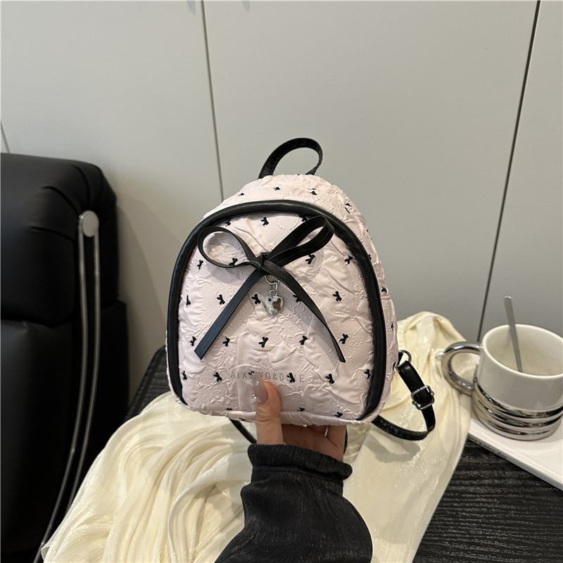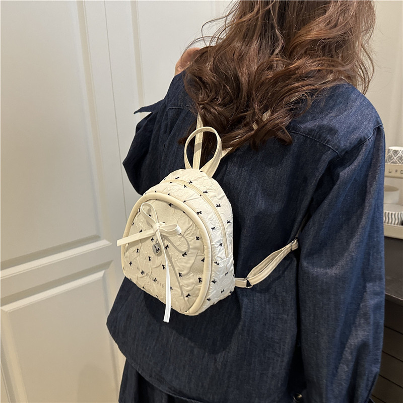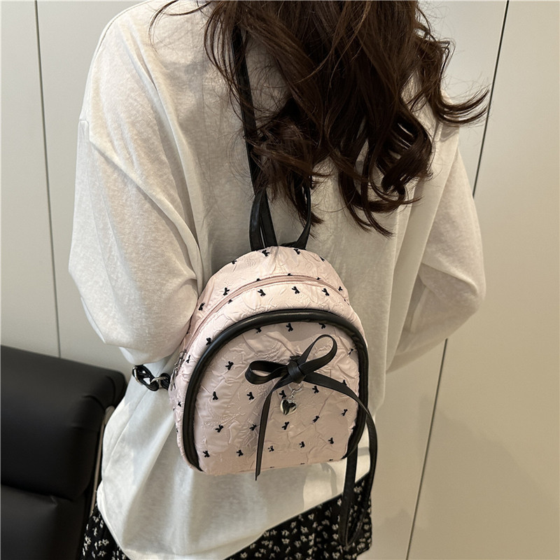 潮流洋气百搭新款时尚双肩背包女波点蝴蝶结可爱小众学院双肩包