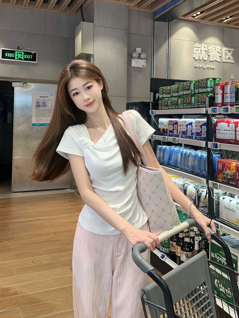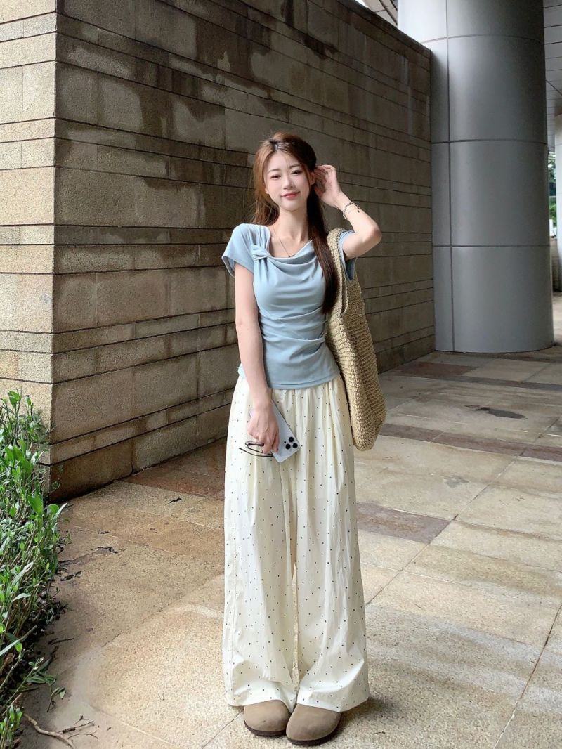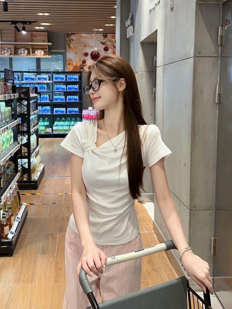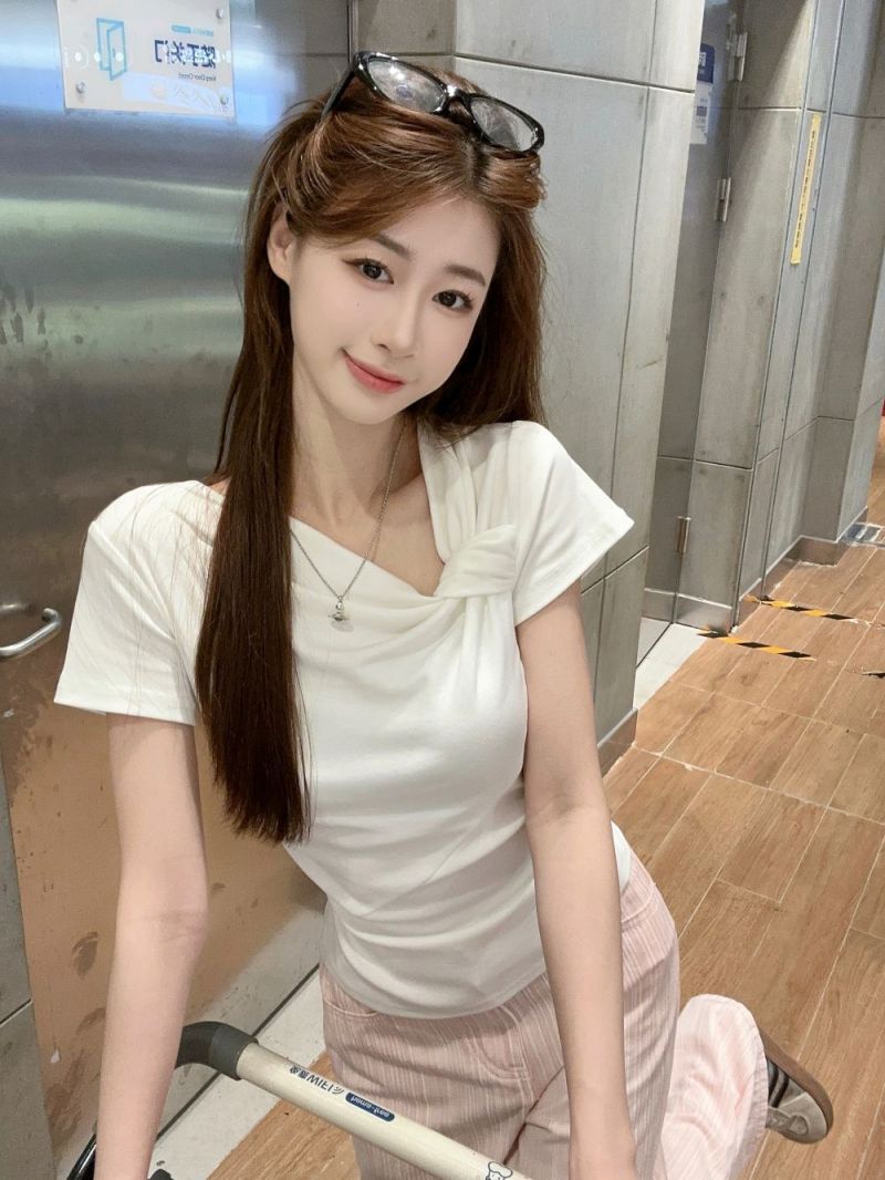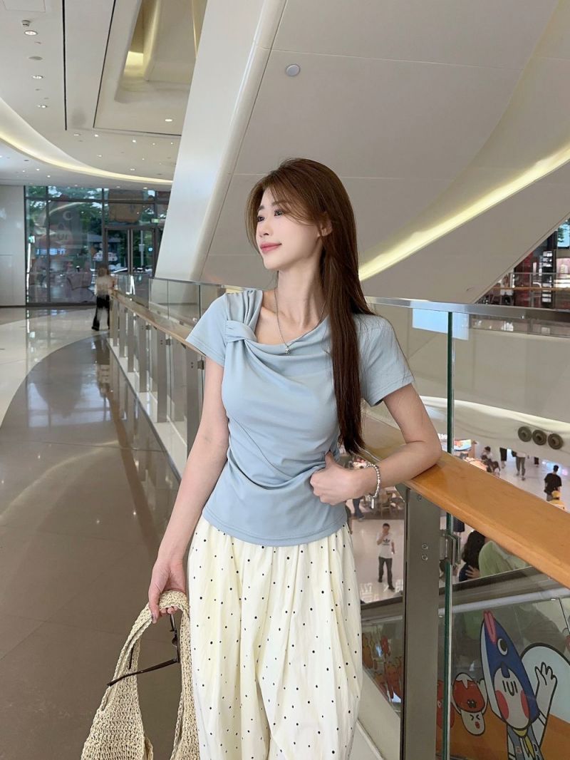 不规则扭结设计感短袖T恤女夏新款宽松修身显瘦百搭纯色上衣
