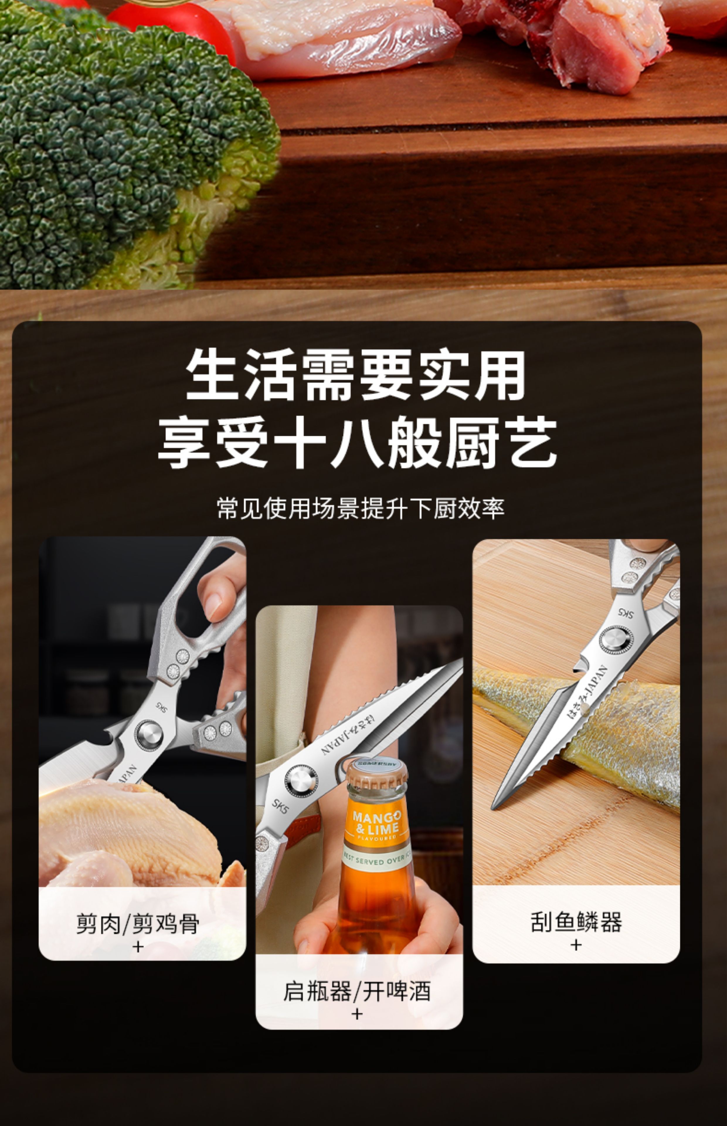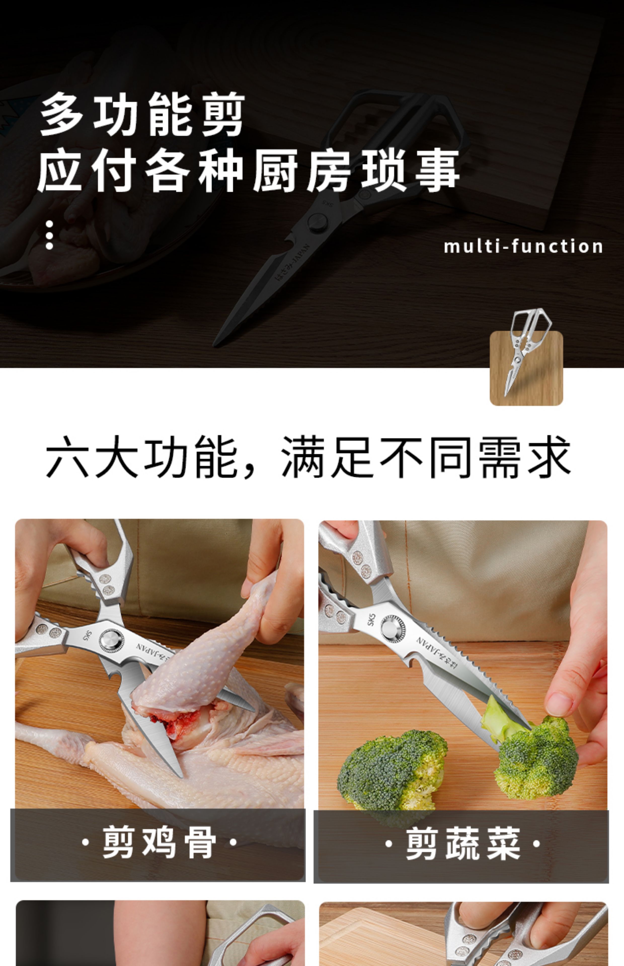 加厚锈钢厨房剪刀家用多功能强力剪鸡鸭鹅骨头用食物剪子