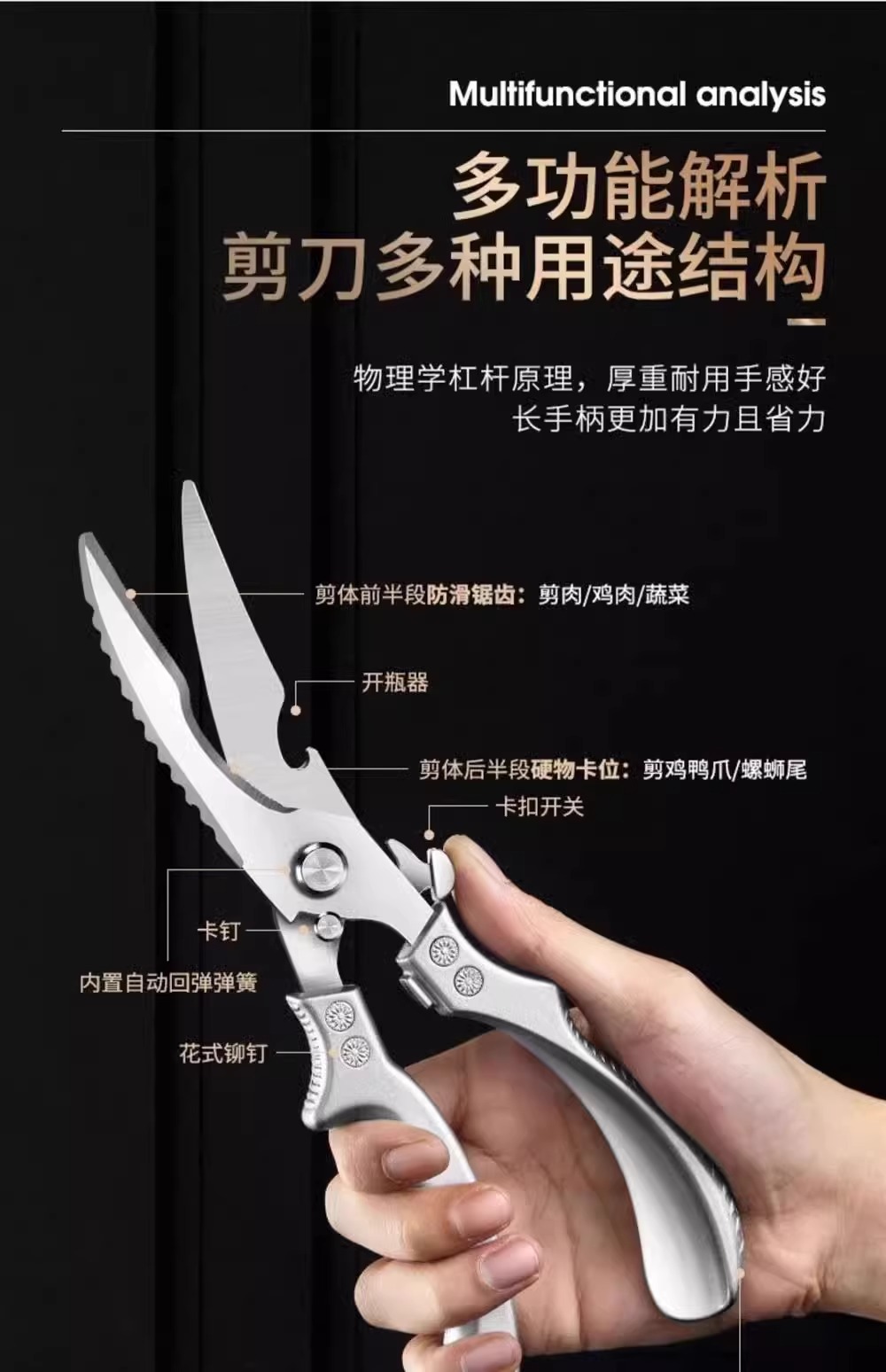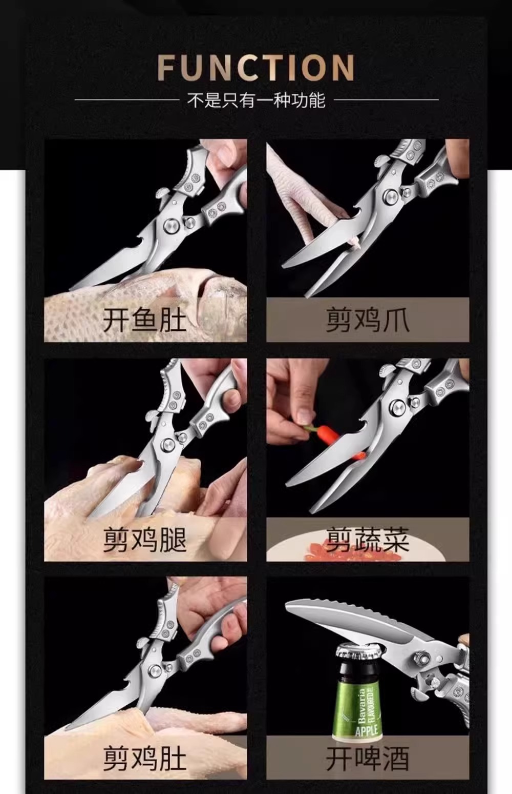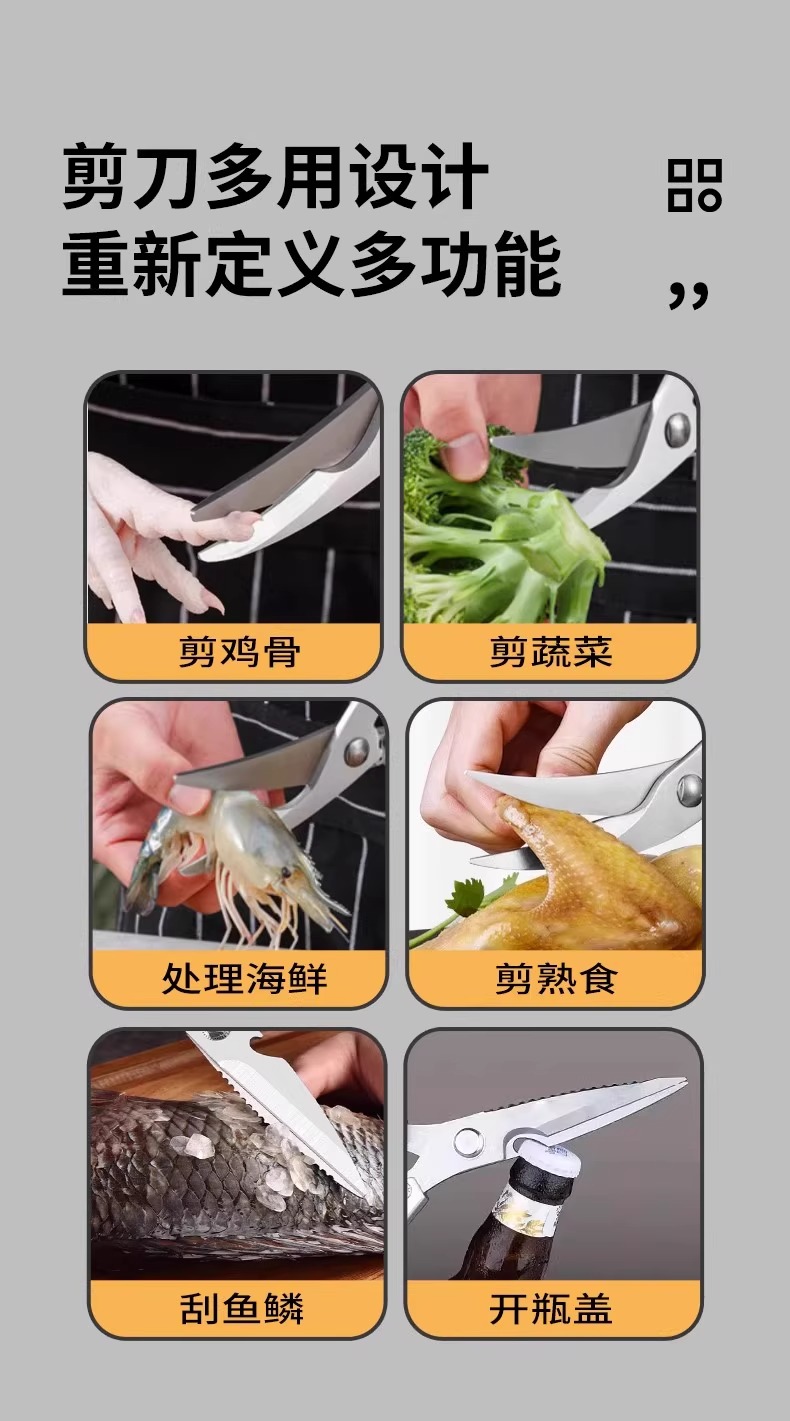 强力鸡骨剪锈钢厨房用剪肉骨头硬物杀鱼多功能剪