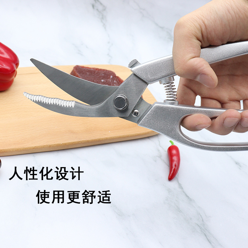 不锈钢厨房剪刀 家用大号带回弹多功能强力剪烤肉鸡骨剪