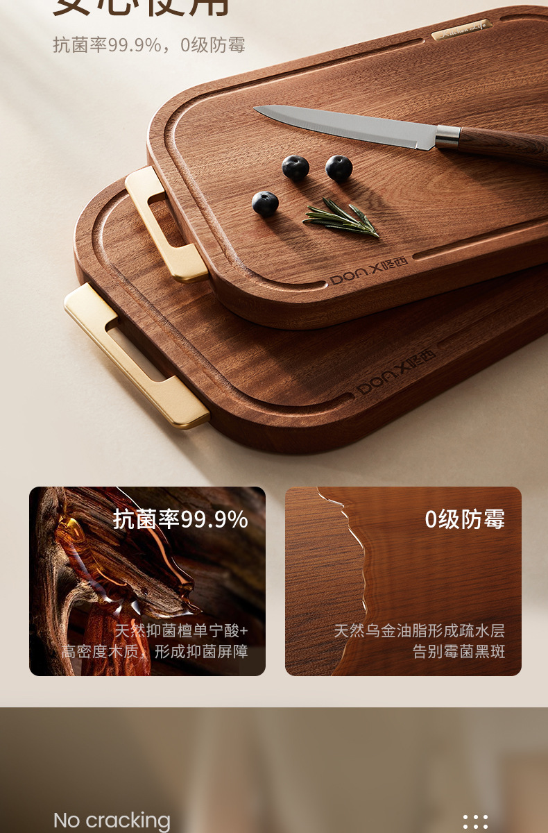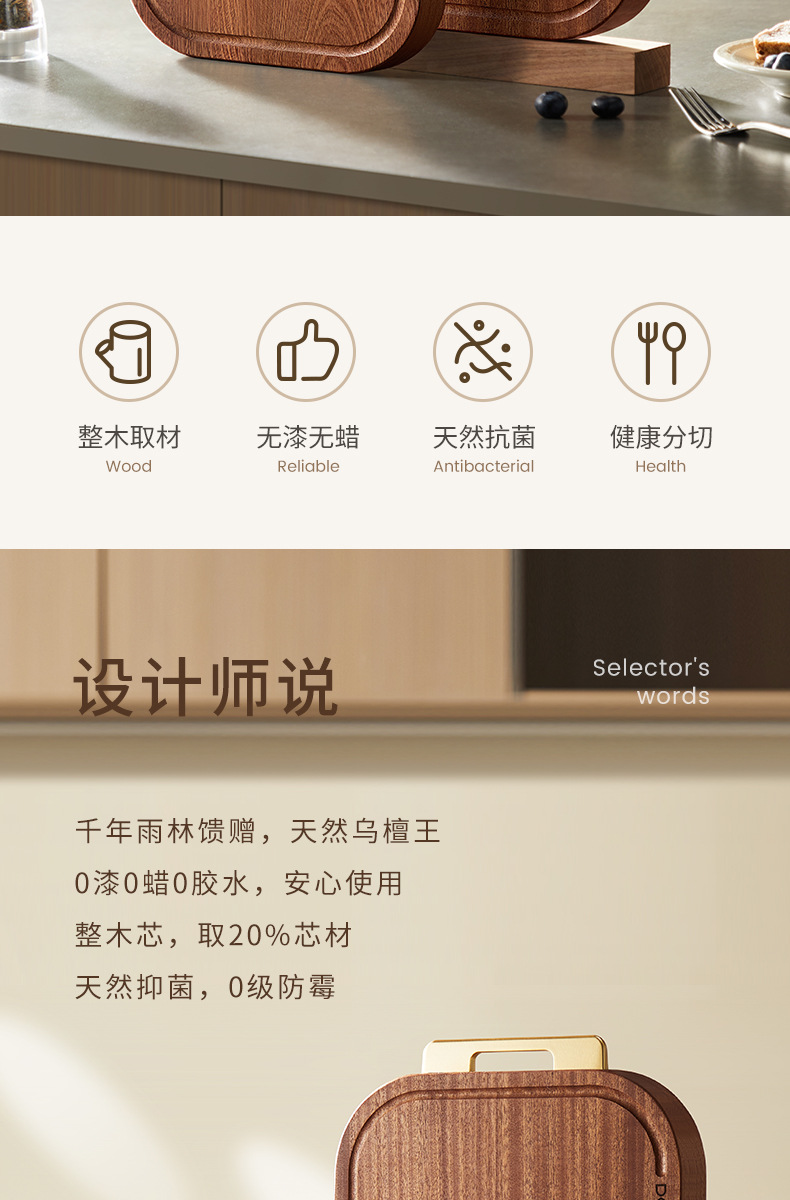 整木乌檀木菜板防霉家用切菜板实木砧板双面案板厨房