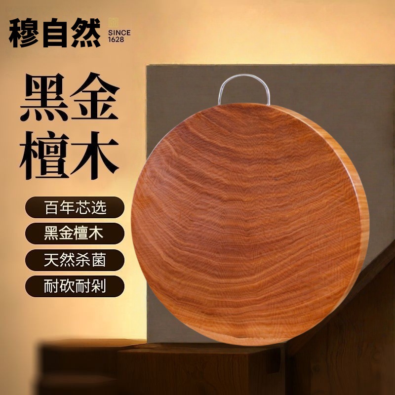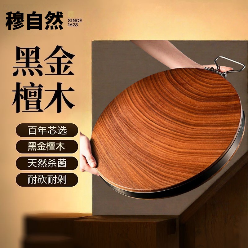 黑金檀木实木整木菜板砧板抗菌防霉家用厨房切菜板圆形厨房案板