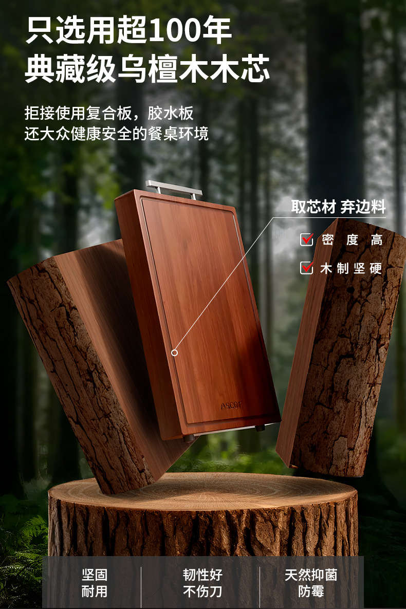 乌檀木菜板实木整木家用防霉抗菌厨房切菜板砧板双面案板粘板