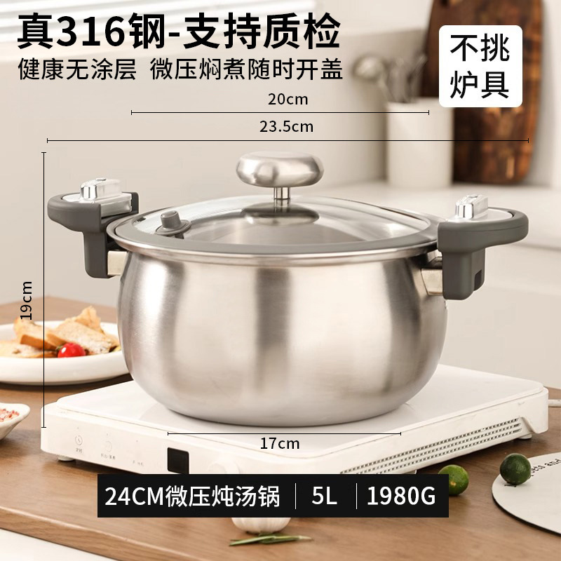 316食品级不锈钢大容量炖煮焖微压锅 家用加厚炖汤锅防爆高压锅