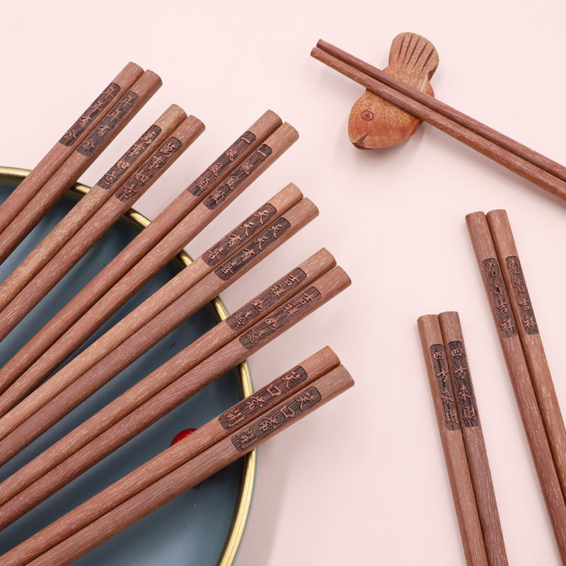 红檀木刻字筷子简约鸡翅木家用实木加长10双耐温红木质快子餐具