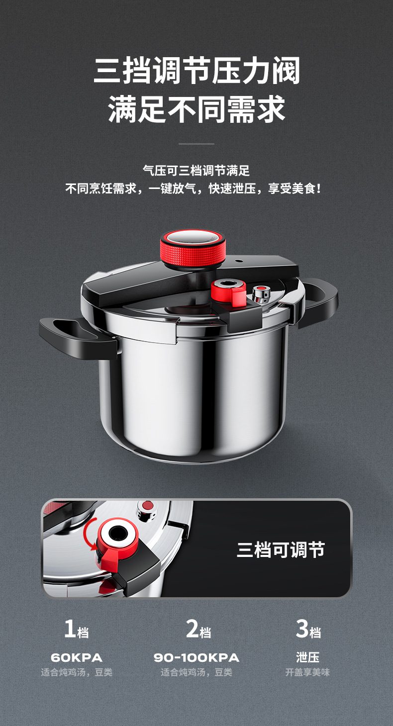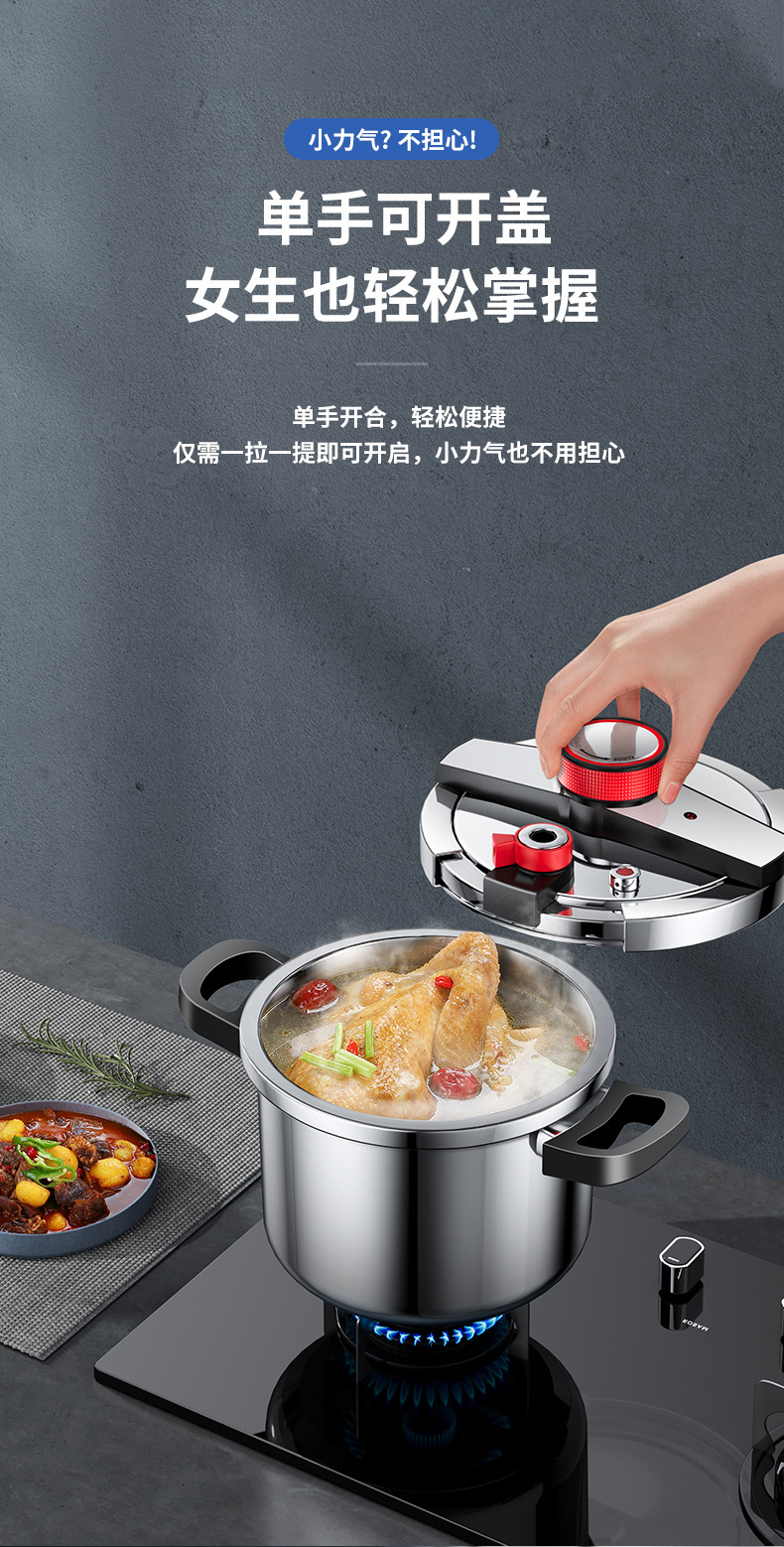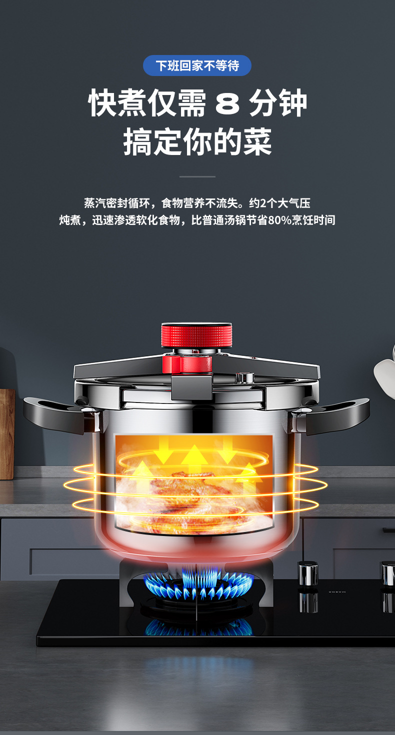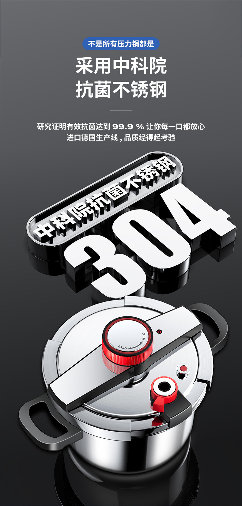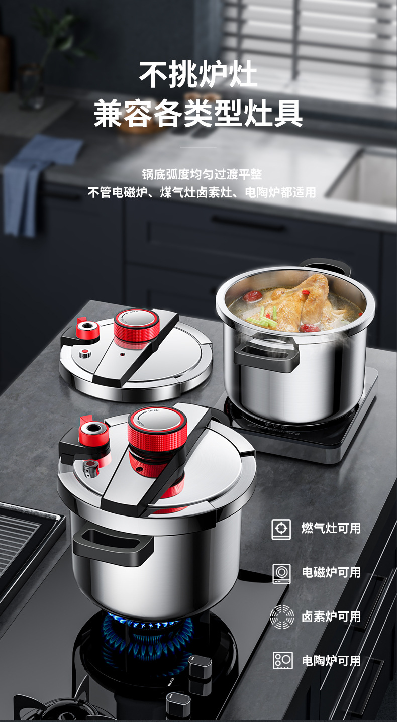 304不锈钢高压锅6L8L家用加厚防爆压力锅三档炖煮节能锅具
