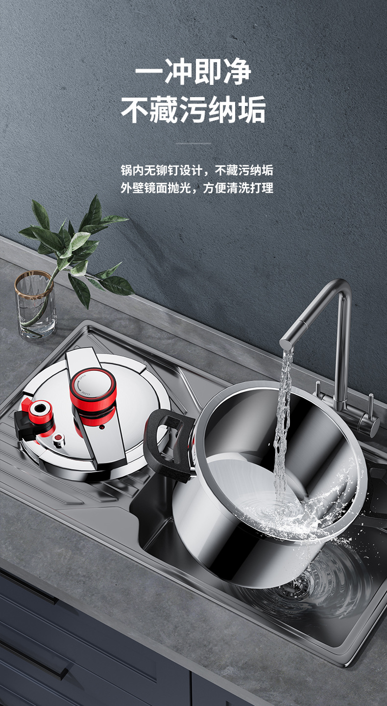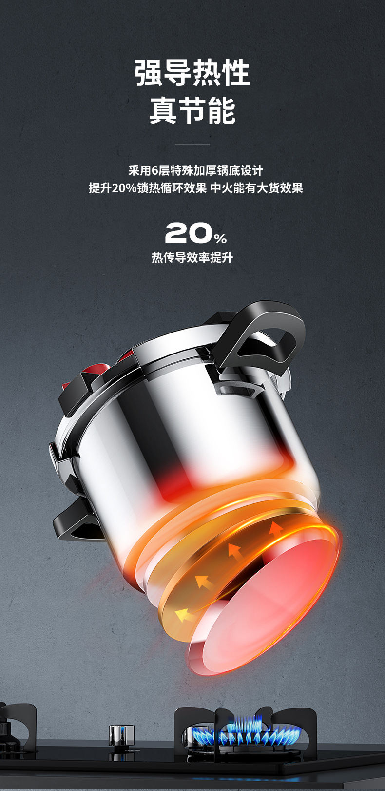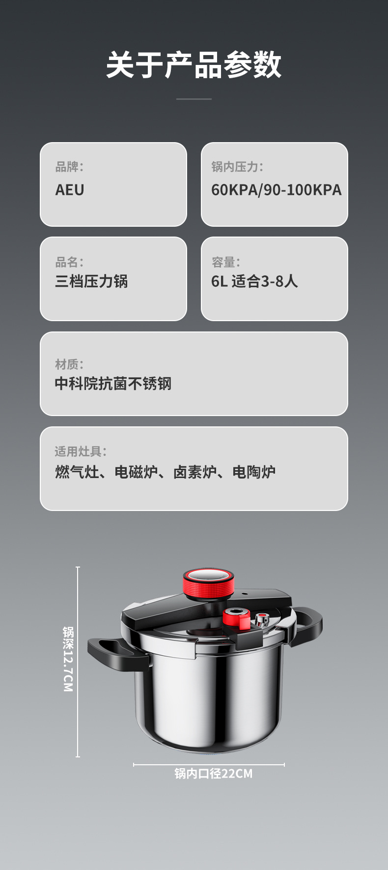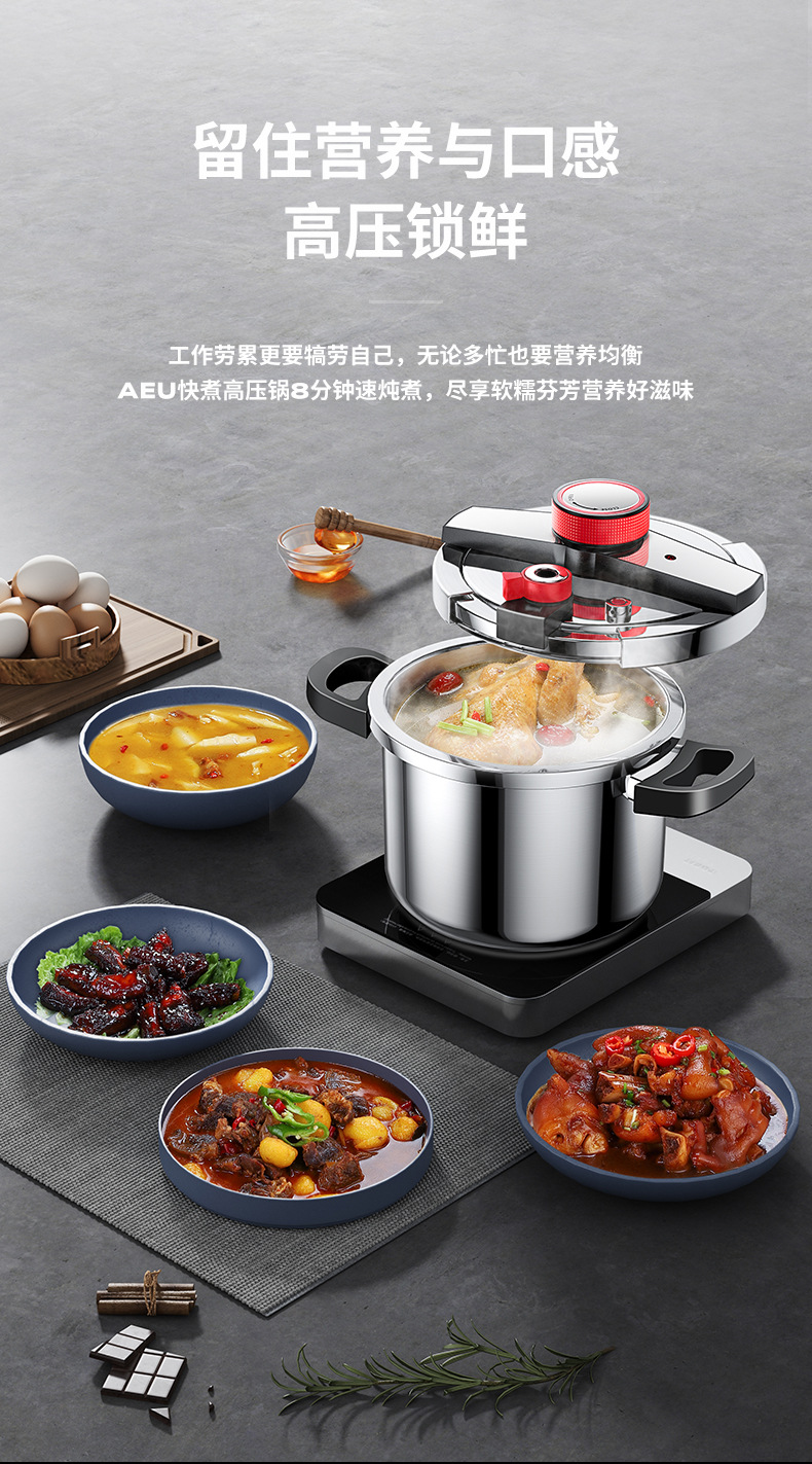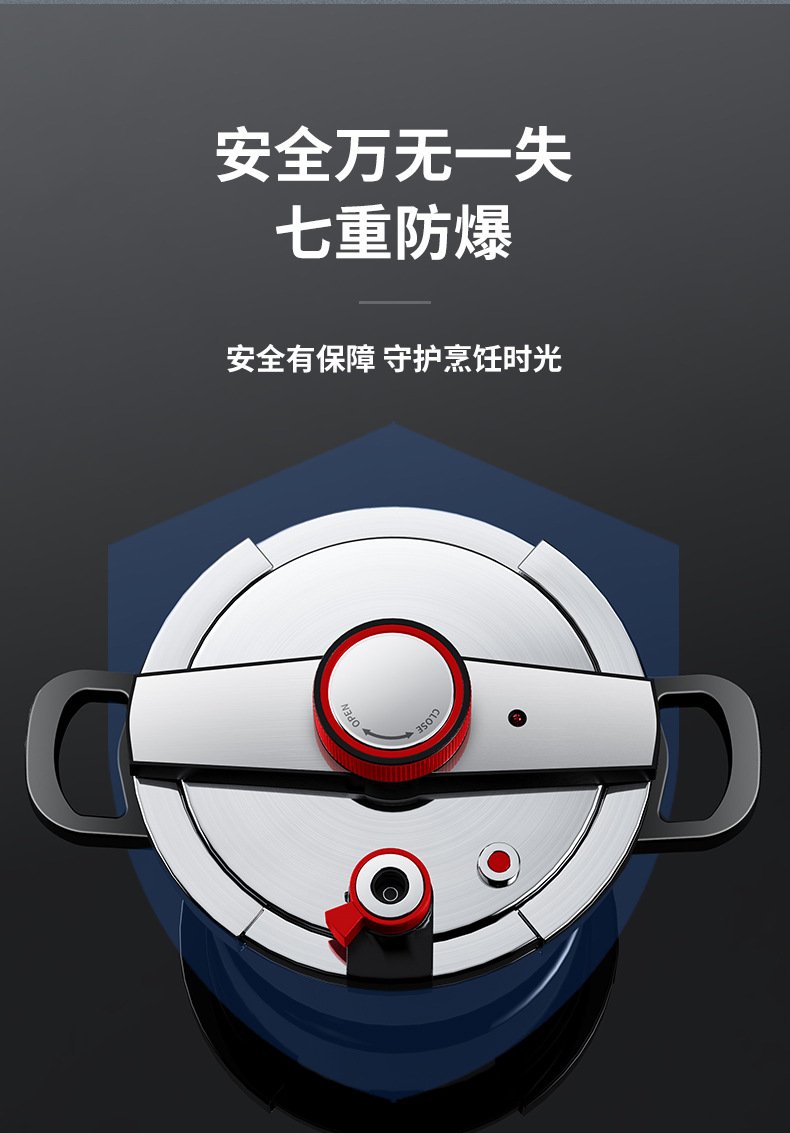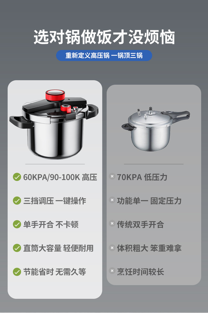 304不锈钢高压锅6L8L家用加厚防爆压力锅三档炖煮节能锅具