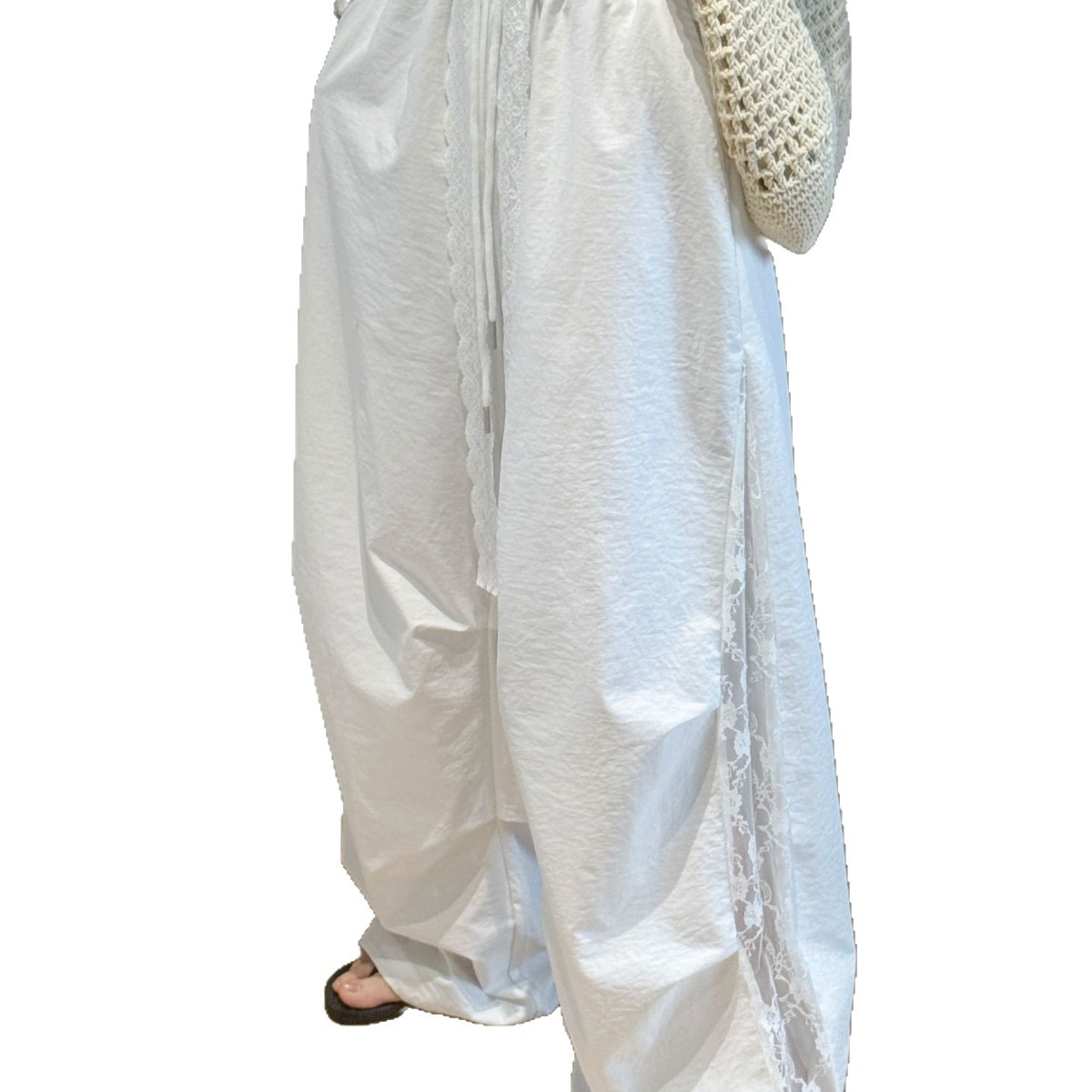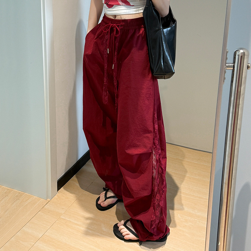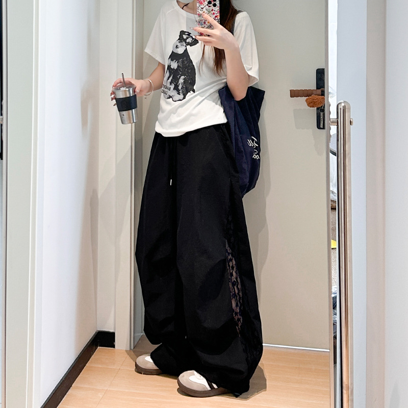蕾丝拼接工装裤子女2025春夏新款高腰显瘦直筒裤美式休闲风拖地裤