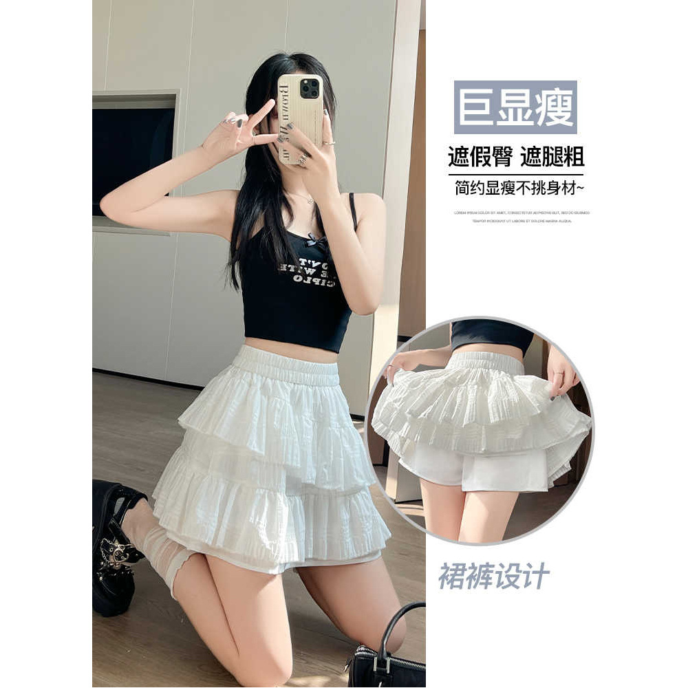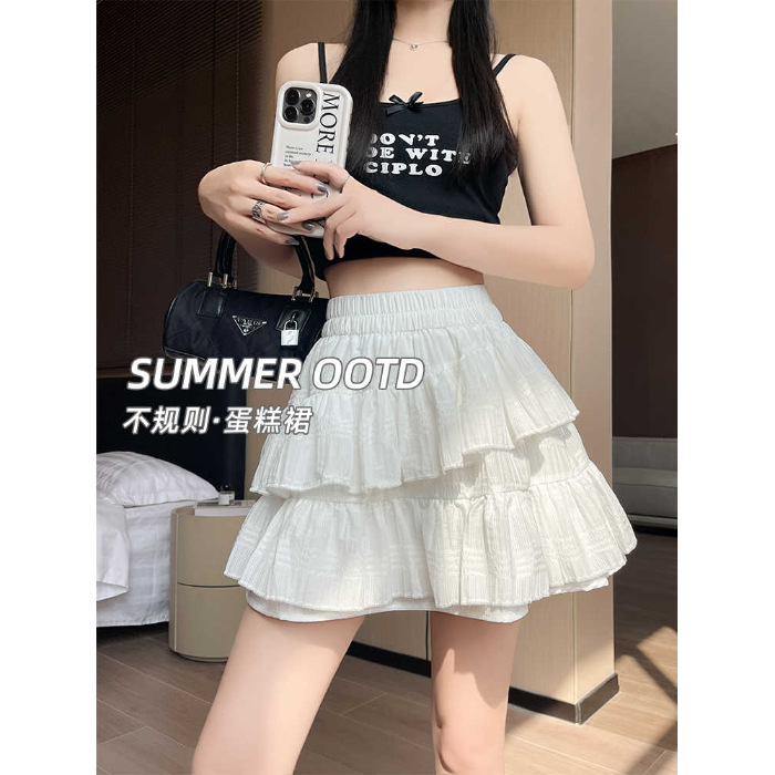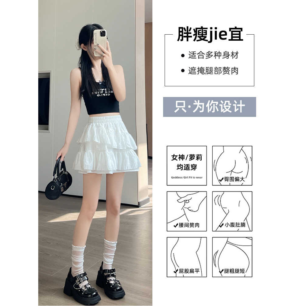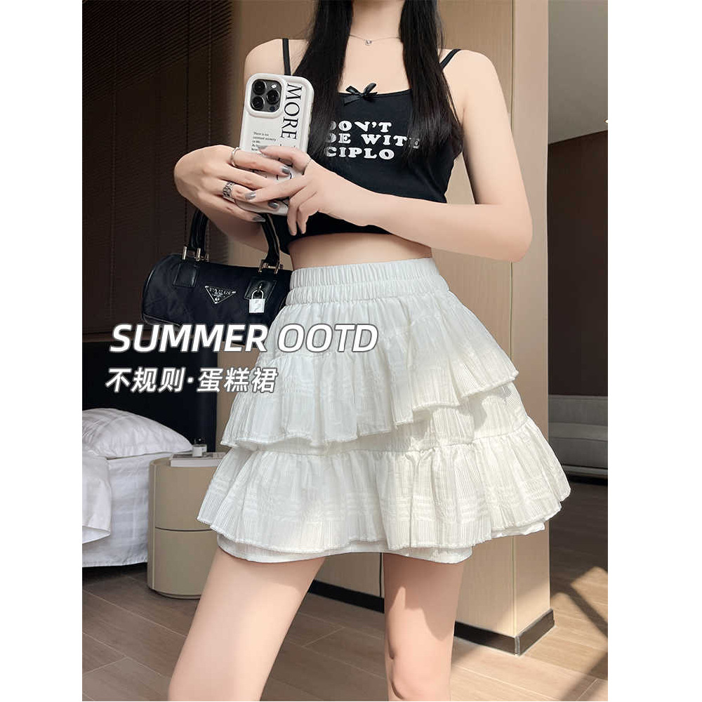白色蛋糕短裙女夏季2025年新款芭蕾风裙子高腰a字显瘦蓬蓬半身裙
