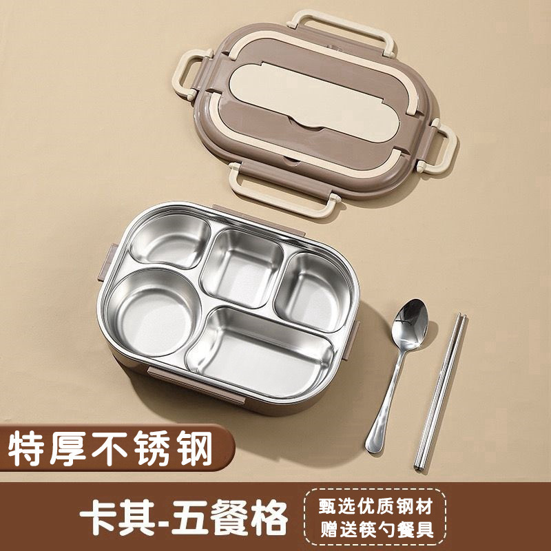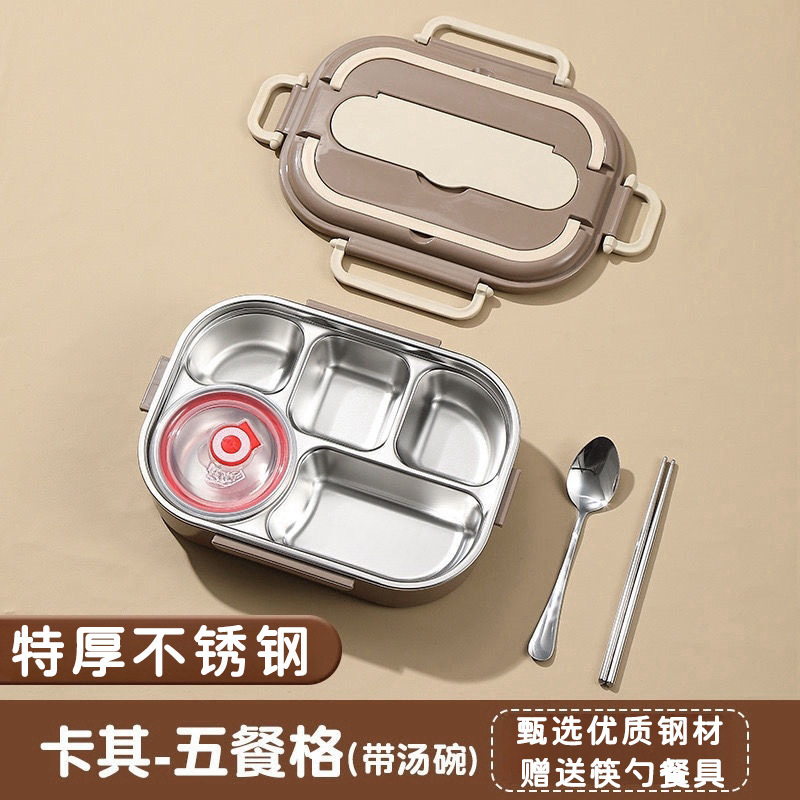 - 食品级内胆-卡其色【五格+餐具+汤碗】