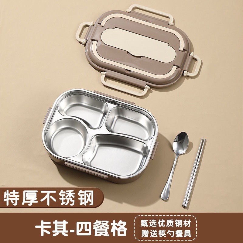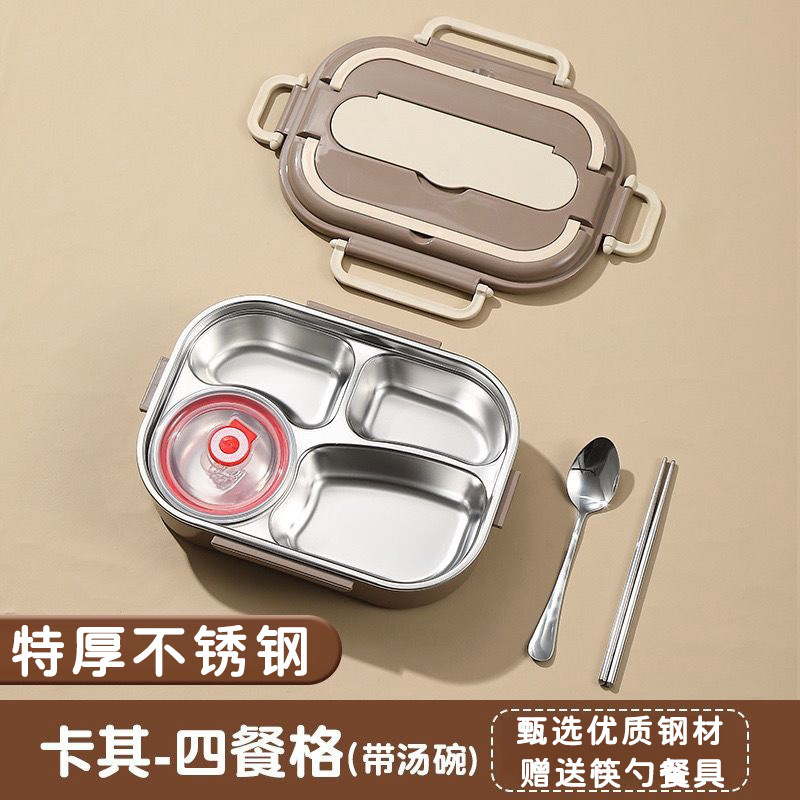 - 食品级内胆-卡其色【四格+餐具+汤碗】
