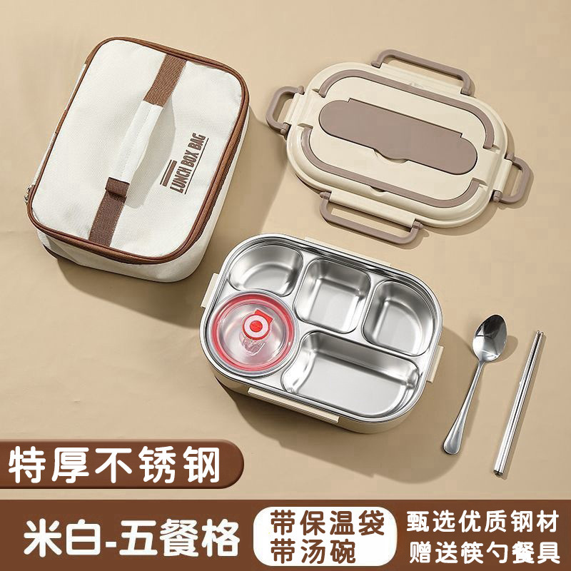 - 食品级内胆-米白色【五格+餐具+汤碗+保温袋】