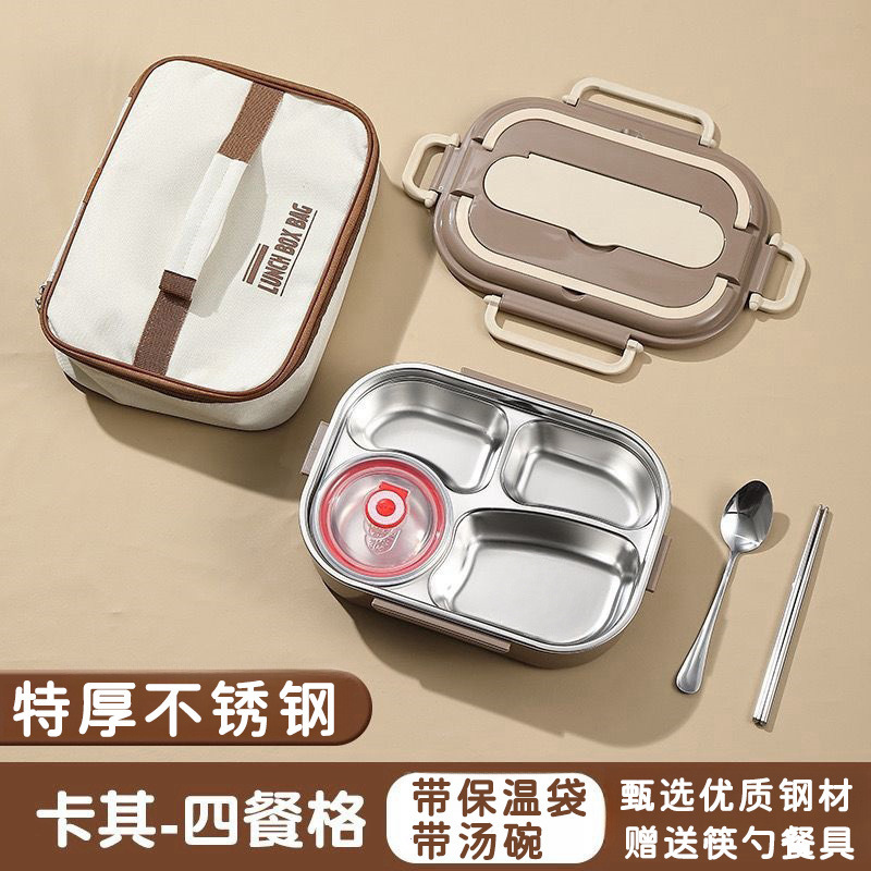 - 食品级内胆-卡其色【四格+餐具+汤碗+保温袋】