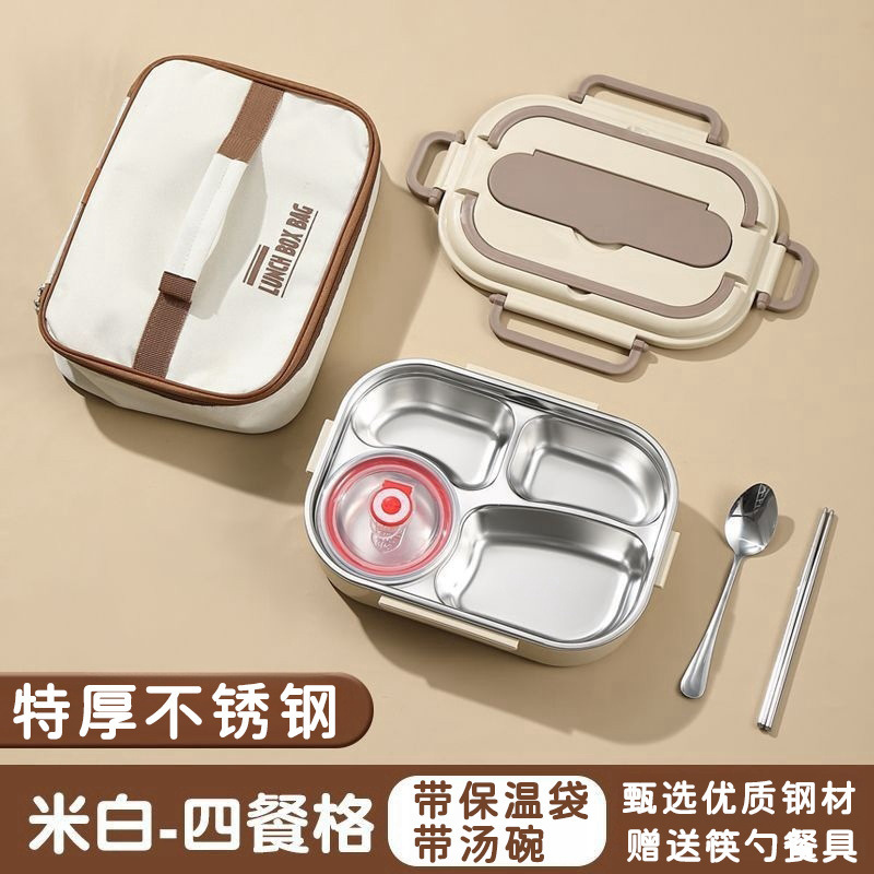 - 食品级内胆-米白色【四格+餐具+汤碗+保温袋】