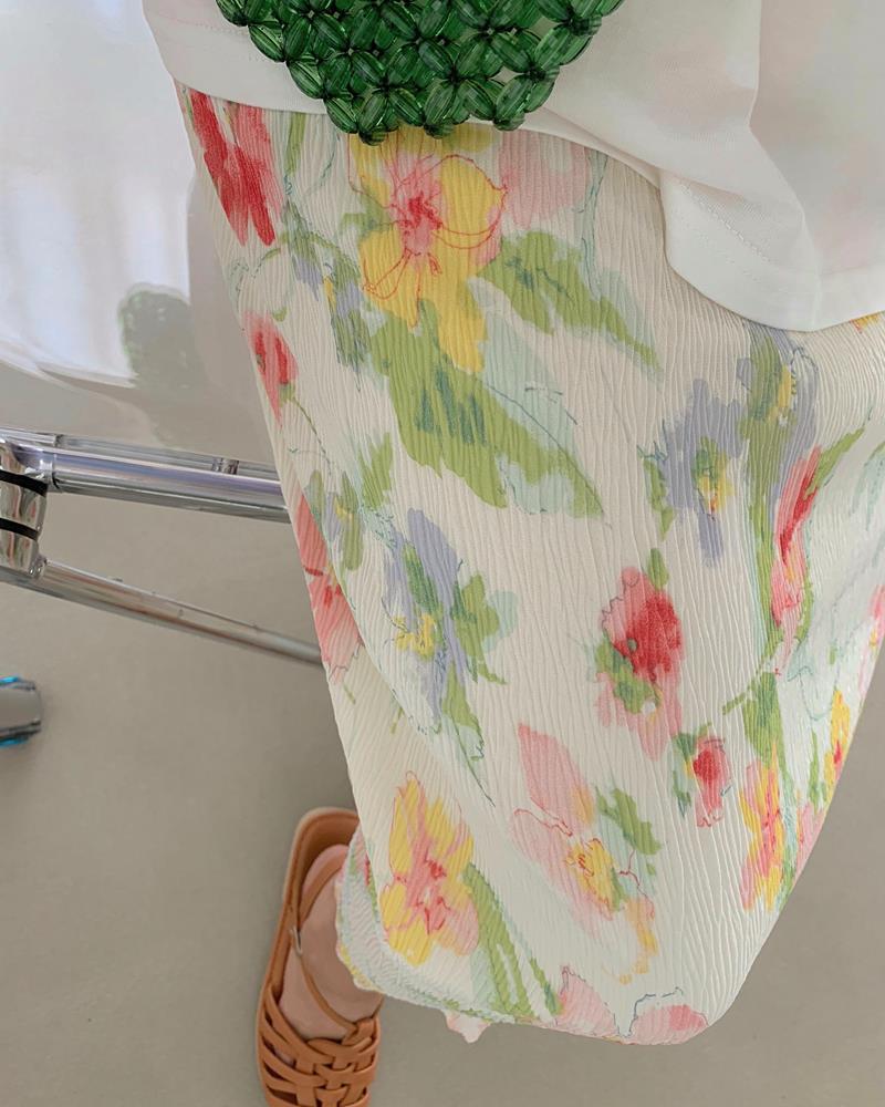仙女油画裙!松紧腰春夏ins半身裙A字显瘦中长碎花长裙